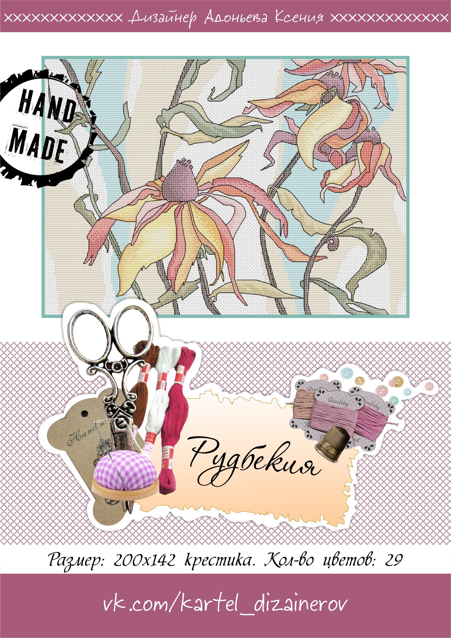 Размер 200х142 крестиков, 29 цветов.