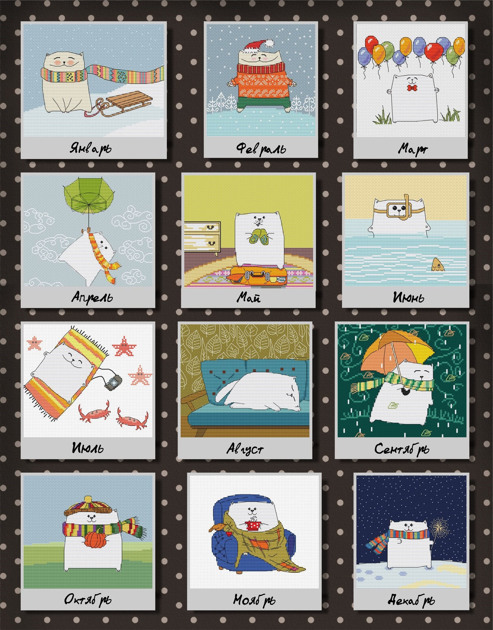 Магазин » Эксклюзив. схема для вышивки крестом Календарь с котами