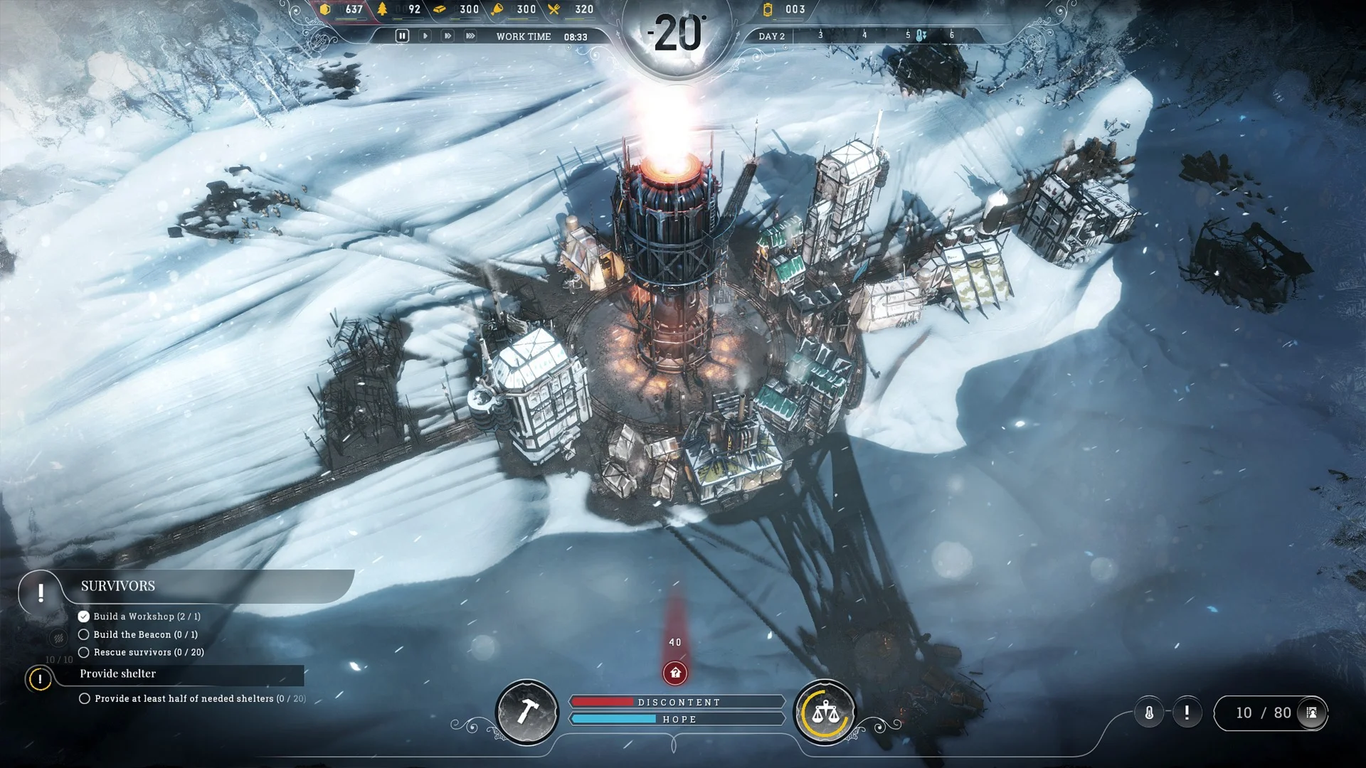 Frostpunk — это градостроительный симулятор с элементами стратегии и выживания общества, где без тепла нет жизни, а каждое решение имеет свою цену. В полностью промерзшем мире люди разрабатывают паровые машины, чтобы противостоять невыносимому холоду. Вам предстоит построить последний город на земле и обеспечить свой народ средствами выживания.