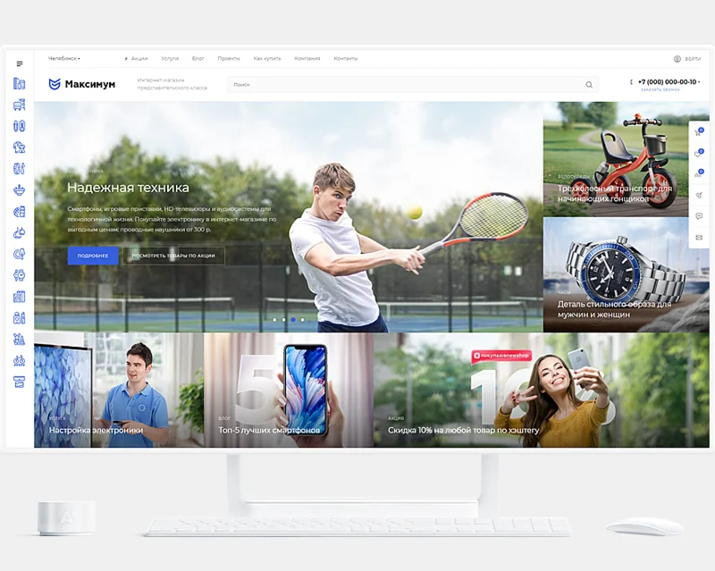 Аспро: Максимум — универсальный интернет-магазин, разработанный с учетом пожеланий пользователей, современных тенденций и технологий для быстрой загрузки. Работает на опережение, решает реальные задачи бизнеса, идеально отображается на всех устройствах.