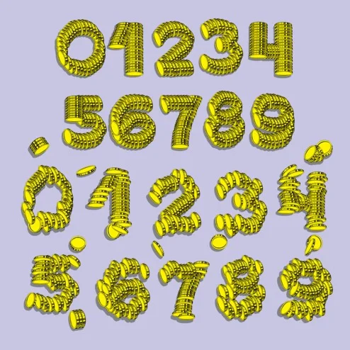 Авторский проект - векторные кириллические буквы. Весь русский алфавит и все цифры. Буквы составлены из золотых монет, первый вариант из цельных столбиков монет, второй вариант - разваливающиеся буквы. В архиве вектор для CorelDraw и eps файлы. В архиве также растровый вариант высокого разрешения. Прямая ссылка для скачивания архива.