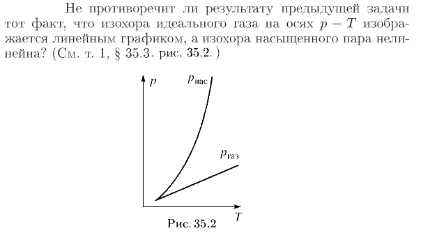 Не противоречит ли результату предыдущей задачи тот факт, что изохора идеального газа на осях р — Т изображается линейным графиком, а изохора насыщенного пара нелинейна? (См. т. 1, § 35.3, рис. 35.2.)