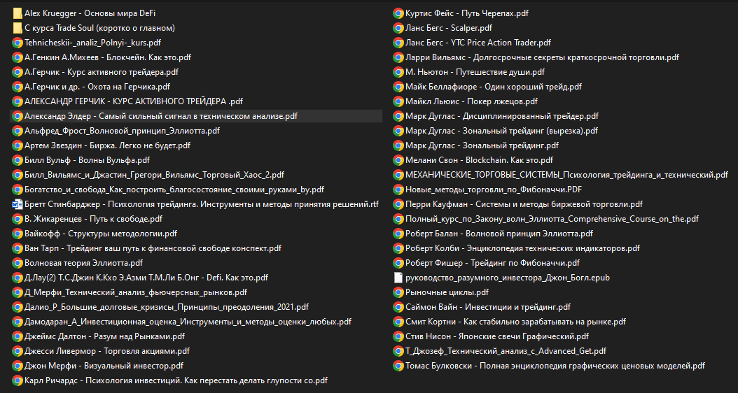 После покупки данного товара вы получите ссылку на архив (см. скриншот) размером 656 мб. с материалами по Трейдингу, Инвестициям, Криптовалютам.