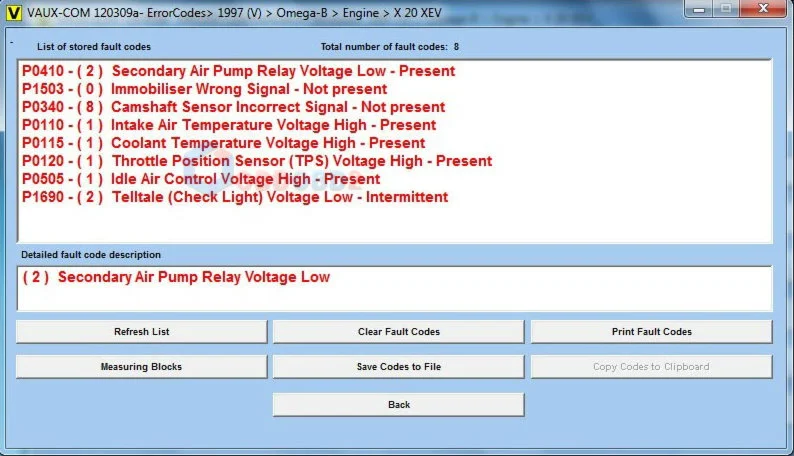 -считывание и расшифровка кодов неисправностей;