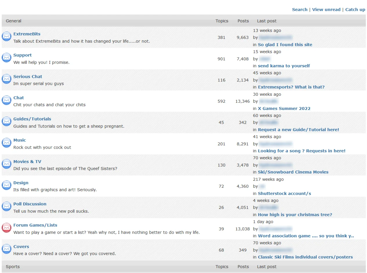 EXTREMEBITS.NET - Это хороший зарубежный торрент - трекер, посвящённый экстримальным видам спорта, таким как: лыжи, скалолазание, сноуборд, motoX, bmx, паркур, скайдайв и многое другое. Если вы поклонник экстремальных видов спорта, то это место для вас. Рейтинг на трекере держать не сложно, благодаря наличию бонусной системы и раздач "freeleech", на которых скачанное не засчитывается.