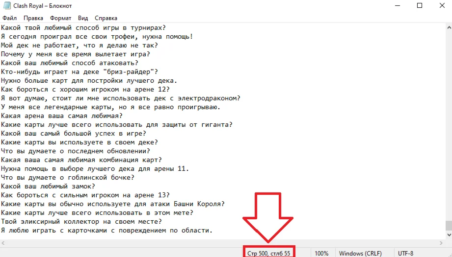 ФАЙЛ ТХТ с фразами по игре Clash Royal