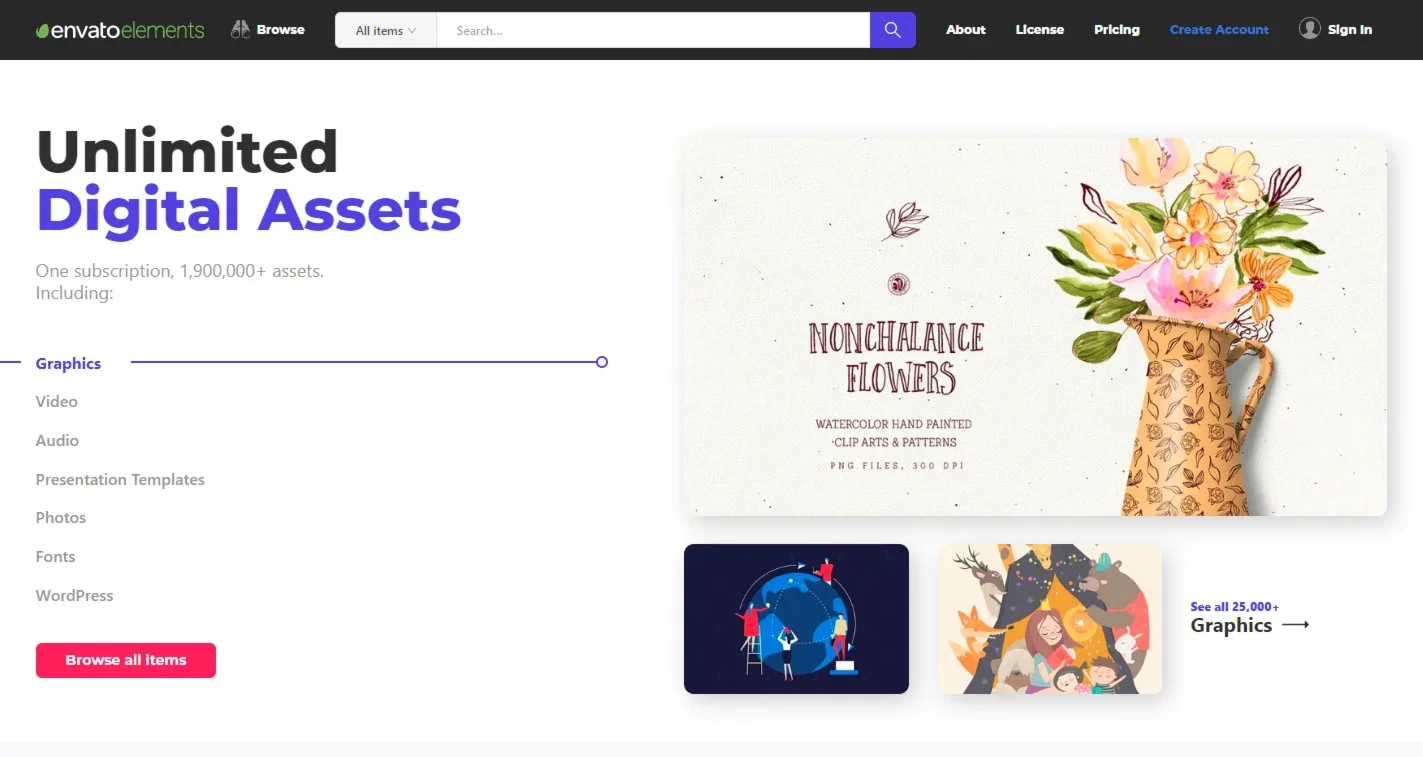 ✨ Envato Elements — это объемная база с графическими элементами, музыкой и видео, для осуществления творческих процессов пользователя.
