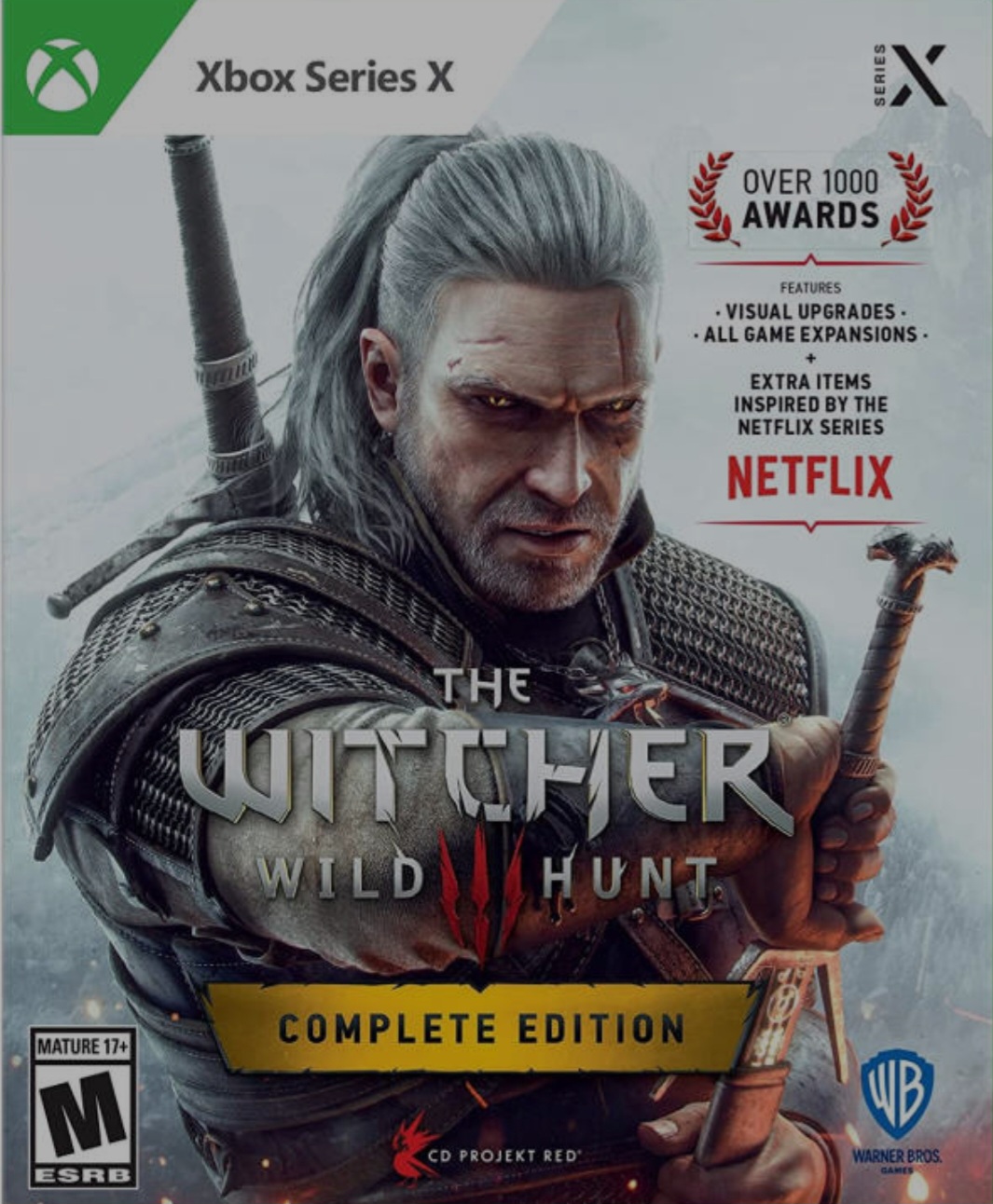 Полное издание содержит основную игру, где вы можете насладиться огромным приключением в открытом мире на 100+ часов, а также сюжетные дополнения «Каменные сердца» и «Кровь и вино», рассчитанные ещё на 50 часов игры. В это издание входят также все дополнительные игровые материалы и такие нововведения, как предметы из сериала «Ведьмак» от Netflix (оружие, доспехи, костюмы), встроенный фоторежим и многое другое!