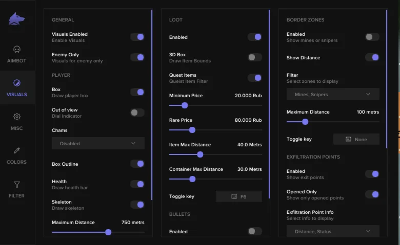 Приватный чит Fecurity для игры Escape from Tarkov создан годами проверенной командой разработчиков, которая имеет многолетний опыт создания приватных читов для различных популярных игр. Они не остались в стороне от шутера Escape from Tarkov и создали уникальный софт с современным способом обхода античита.