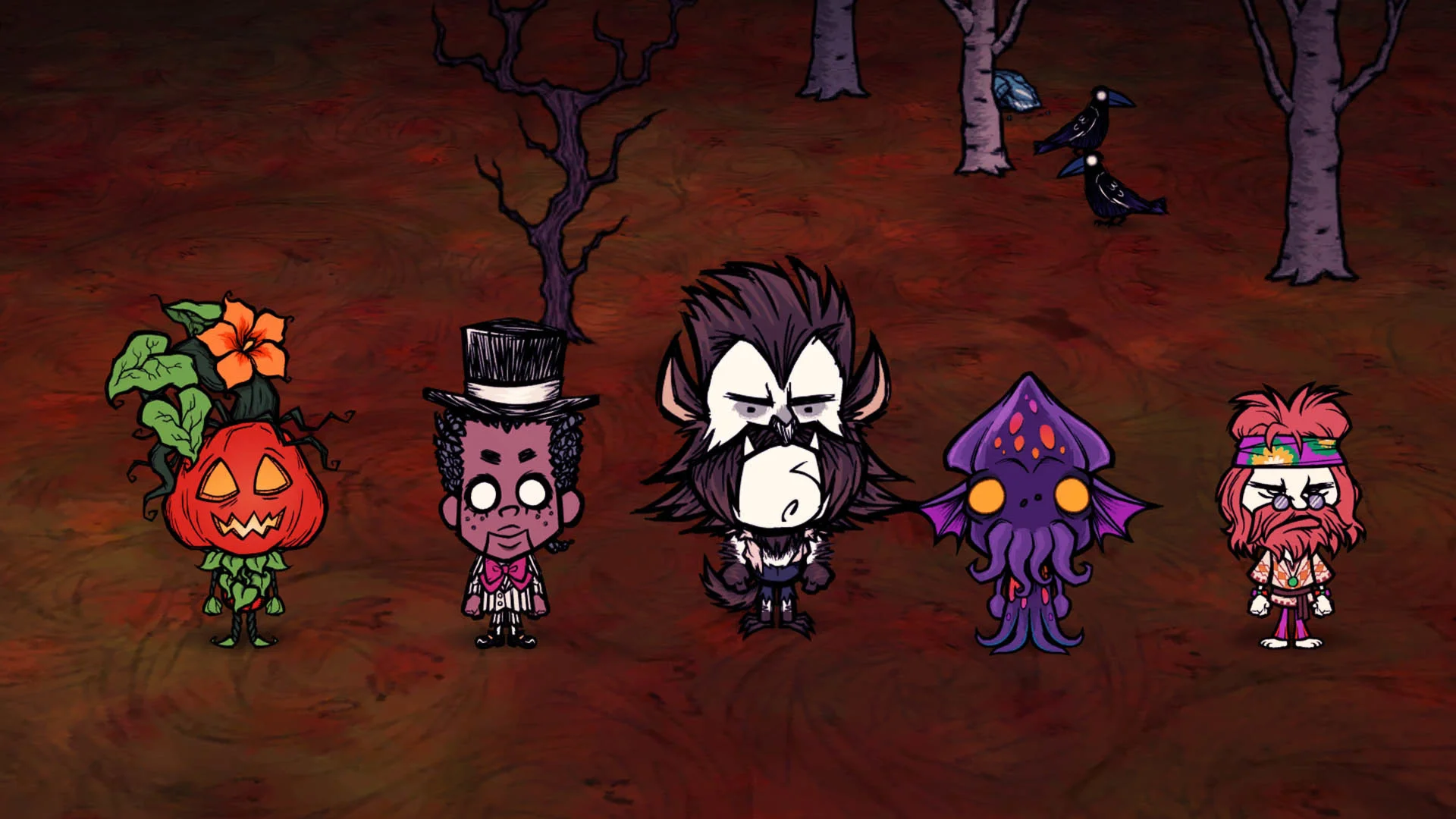 The final installment in the trilogy! This Hallowed Nights Chest contains skins for: Walter, Wolfgang, Wormwood, Woodie, and Wurt.
