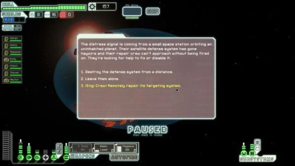 В FTL вы окунетесь в атмосферу управления космическим кораблем, пытающимся спасти галактику. Это опасная миссия, каждая встреча с которой представляет собой уникальный вызов с множеством решений. Что вы будете делать, если шквал ракет уничтожит ваши щиты? Переключить всю энергию на двигатели, пытаясь спастись, включить дополнительное оружие, чтобы уничтожить врага в небе, или взять его на абордаж? Этот "симулятор космического корабля в стиле roguelike" позволит вам отправиться со своим кораблем и командой в приключение по случайно сгенерированной галактике, полной славы и горьких поражений.