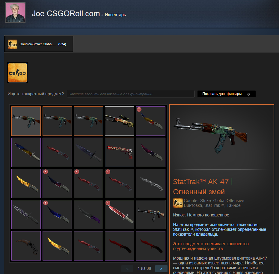 ✅ Инвентарь включает CS:GO.