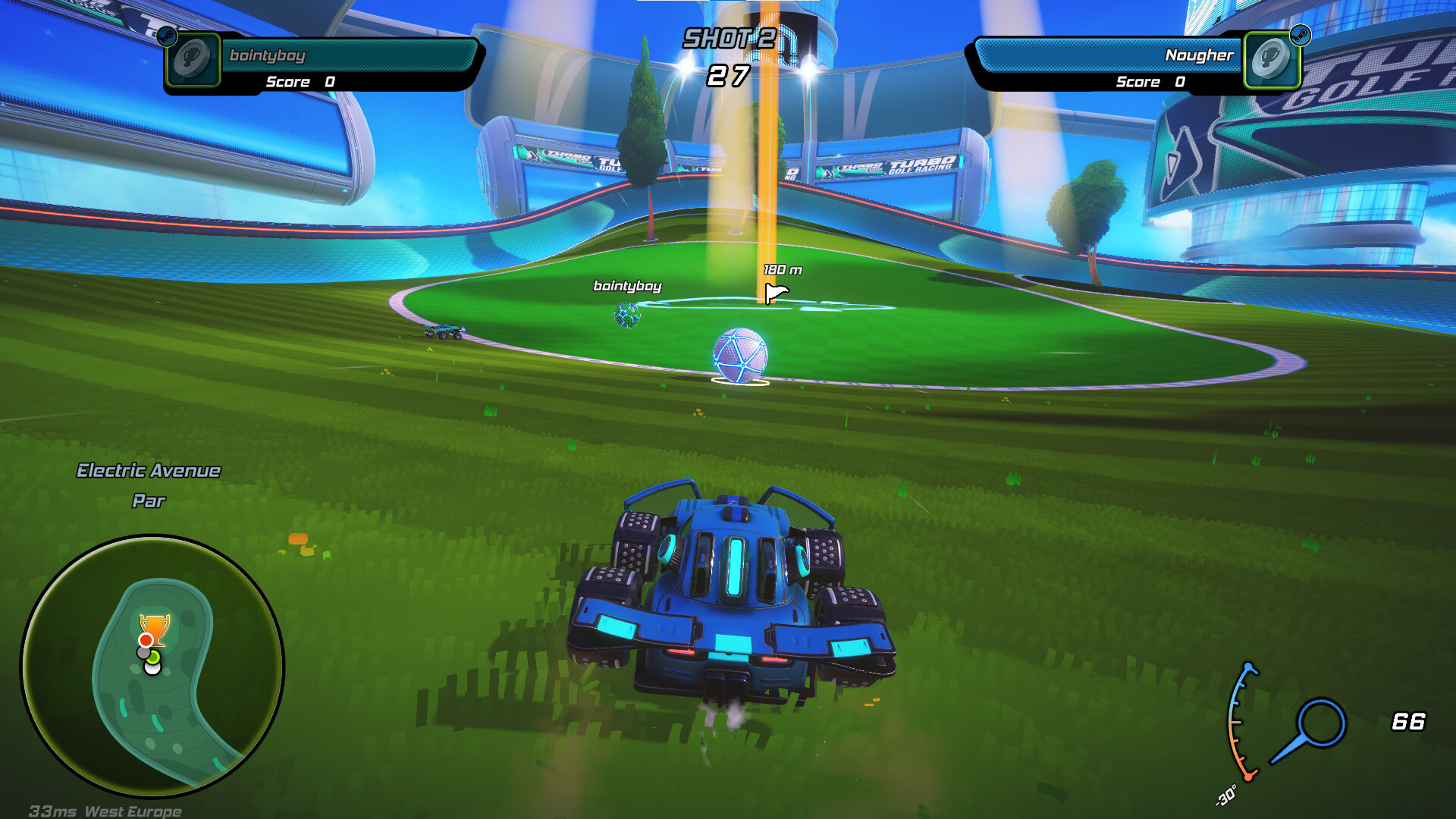 Адреналиновое слияние гонок и гольфа. Проходите разнообразные поля и метко загоняйте мяч в лунки с помощью машины. Учитывайте каждый удар в состязании 1 на 1, соревнуйтесь с 7 противниками в гонке или проверьте себя в игре на время.