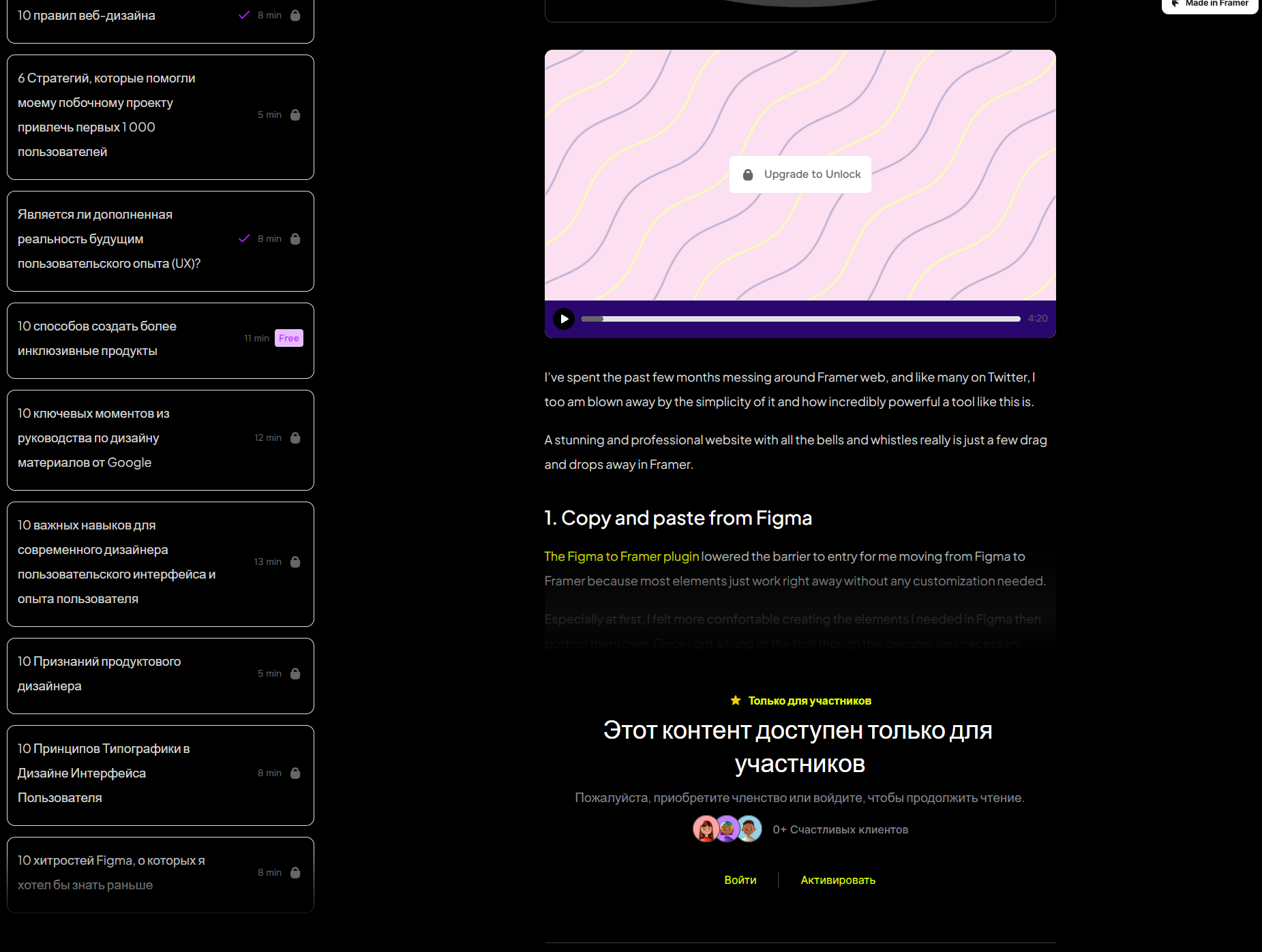 Инструкции внутри самого проекта Framer