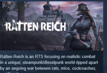 Ratten Reich — это небольшая RTS с интересными боями, в уникальном стимпанк/дизельпанк мире, раздираемом непрекращающейся войной между антропоморфными крысами, мышами, тараканами и ящерицами.