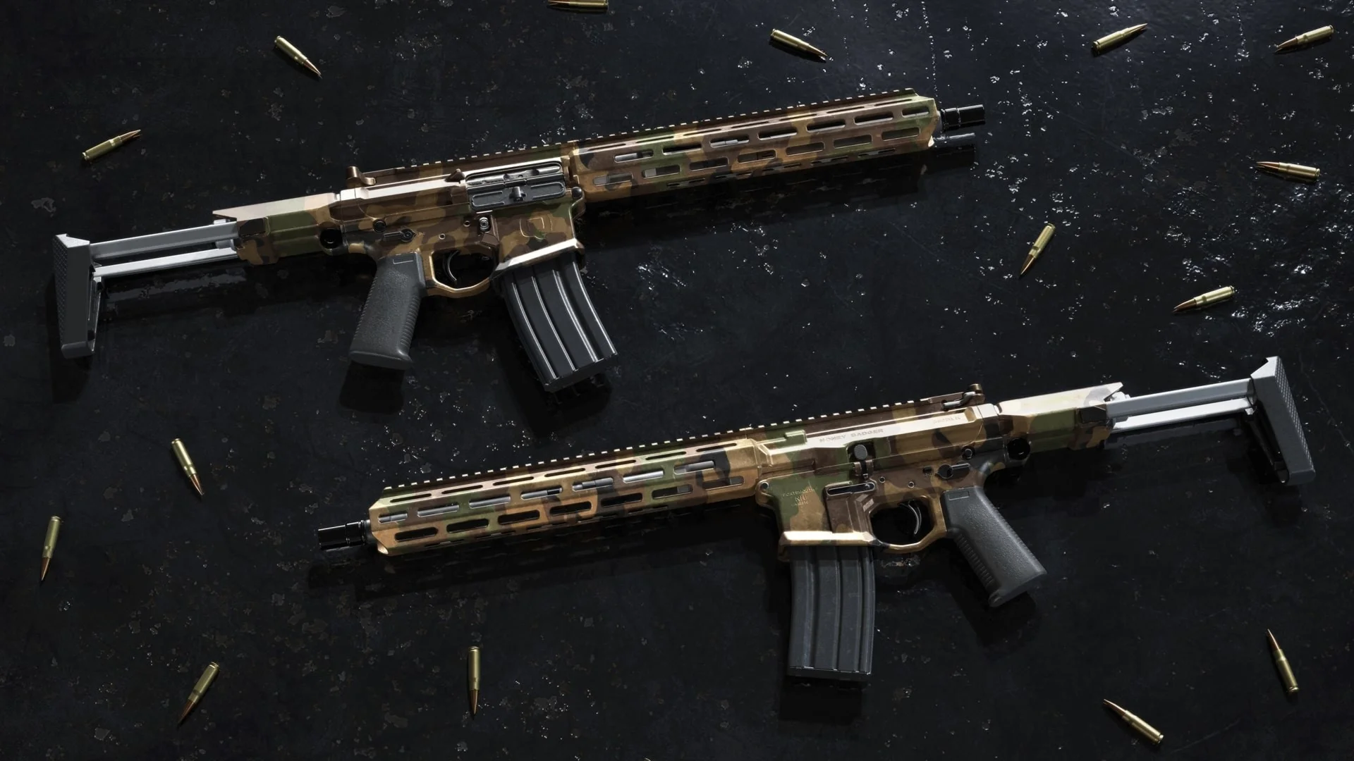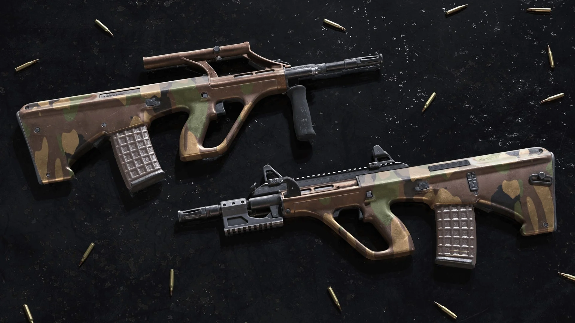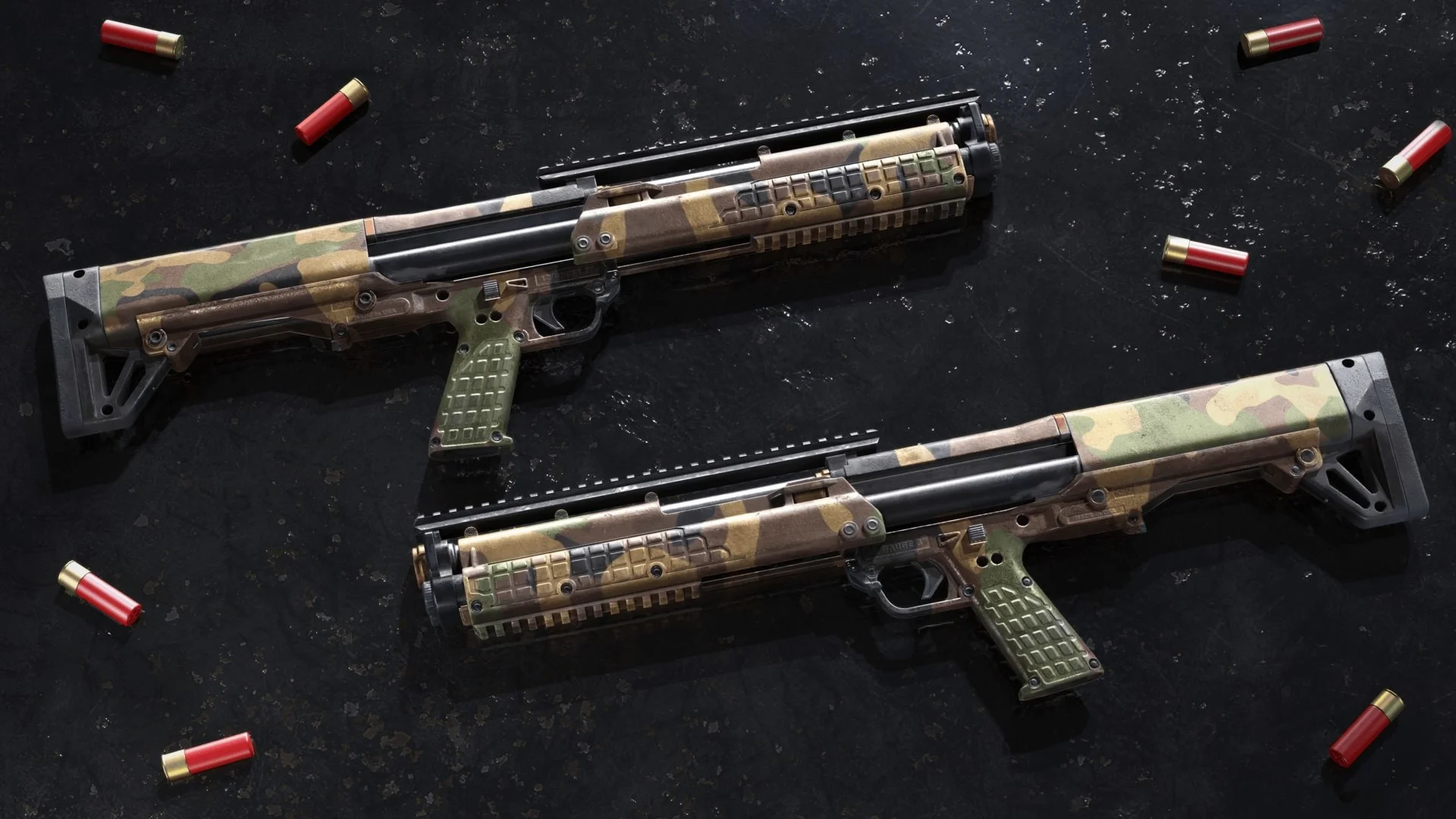 Спрячьтесь на поле боя с набором раскрасок оружия Woodland для команды Security. Эти раскраски можно применить к шести видам оружия.