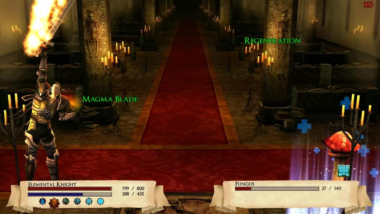Skilltree Saga is the first Rogue-like RPG set in Aventuria - the world of The Dark Eye. Choose to play as human, elf or dwarf and battle randomly generated opponents in over 100 stages, developing a set of magical, enhanceable skills. Story A sinister army of orks and goblins led by the Dark Ruler Sargul are besieging the city of Griffinsford. To make matters worse, your beloved, the daughter of Baron Griffontrue, was abducted, and you desperately take up pursuit. When ambushed by goblins, you are saved by a master of the mysterious Elemental Knights. You are given the rare opportunity to become part of this elite and ancient hidden order. After intensive crash course training, it is up to you to defeat the sinister horde that threatens to overrun the land. Motivating Rogue-like Elements Randomly generated monsters and treasure await the brave Elemental Knight in the margravate of Griffinsford. Defeat enemies and gather from a wide variety of equipment, which you must don to enhance attributes like Strength, Cleverness or Constitution. In the market you can trade equipment and purchase provisions. Use diamonds to purchase rare astral and healing potions to replensih your Astral Energy and health. Round-based Duelling Careful consideration is mandatory when facing the minions of Sargul! Choose from a variety of skills, damage your enemy with wind and water magic or force them to their knees with powerful fire spells. Learn and upgrade your skills. You will need them! So too, your enemies will strike at you with magical skills of their own. Fire will burn your skin, ice chill your bones. Other skills will enfeeble your senses or rain death down upon you. Skilltree with numerous spells of the Elemental Knights You start as an unknown adventurer of either human, elf or dwarf origin. In your conflicts against dangerous monsters, you will earn experience to increase your power steadily. Through level ups you will earn Adventure Points, which can be used to enhance your skills and learn new spells. Over 100 levels of challenging dungeons. Rogue-style! Choose from several dungeons to challenge and master. Hidden within you will encounter deadly creatures, chests filled with treasure or fountains of healing. You may come across a shady but neutral goblin merchant, who will offer to sell you items and equipment on your journey. Fall to a dungeon's dangers and you will be forces to begin anew, but with the experience earned in your attempt. Only the most bravest and strongest will face and conquer the more difficult dungeon bosses, and lend immortality to their name in the hall of heroes!