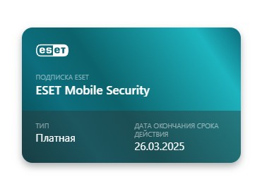 После оплаты вы получаете ключ для активации вашего антивируса ESET Mobile Security через саму программу на 1 устройство сроком до 26.03.2025