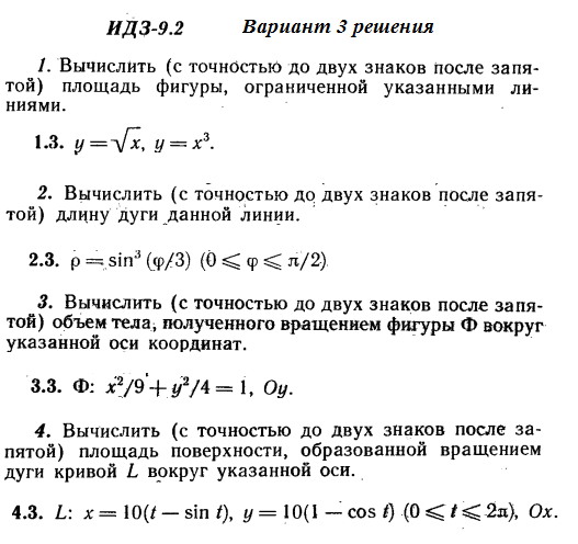 Решения 4-х заданий на приложения определенных интегралов к задачам геометрии из Рябушко части 2 ИДЗ 9.2 вариант 3