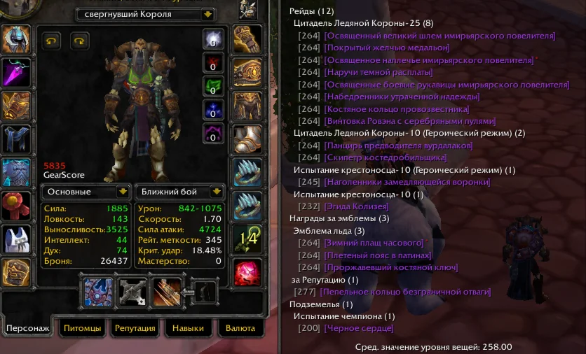 Другие персонажи на аккаунте: Дру 5,7к (Орда), Маг 5,4к (Орда)