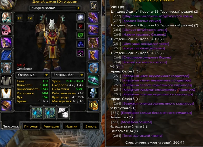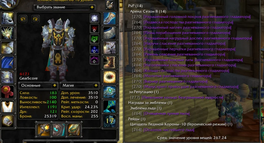 - PvP хил 6171гс, 5/5 а8, информация о вещах на скриншотах