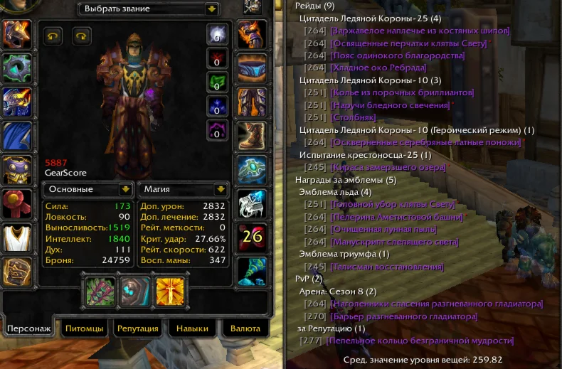 - PvE хил 5887гс, , 1/5 т10_2, 2/5 т10_1, информация о вещах на скриншотах