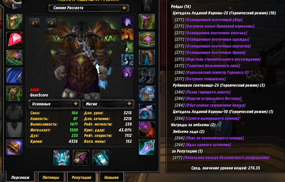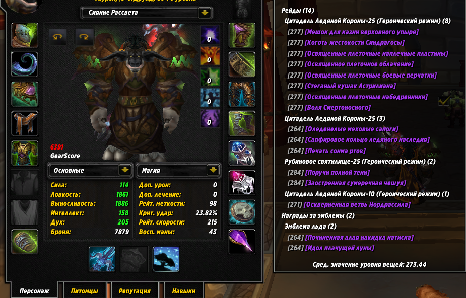 PvE: 6489гс (5/5 т10:3) сова; 6391гс (4/5 т10:3) ферал