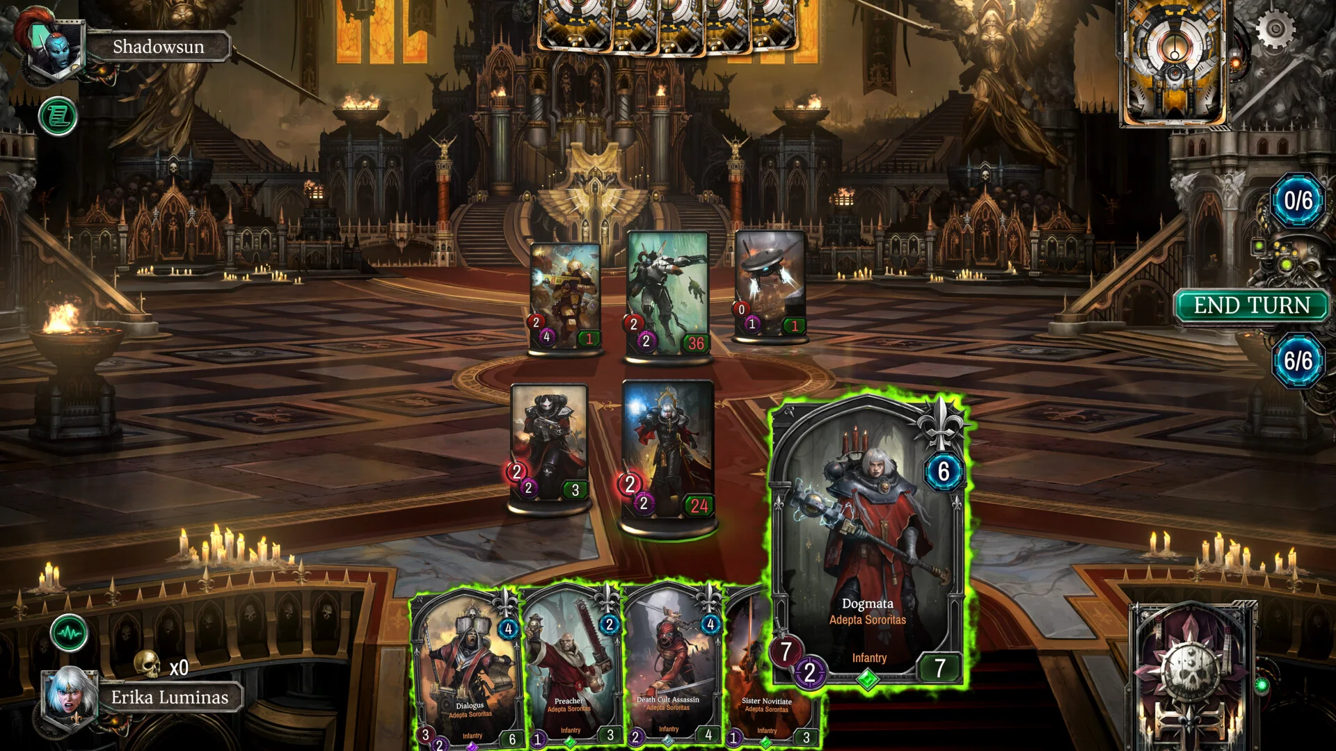 Адепта Сороритас присоединяются к битве! Усильте свою коллекцию легендарным военачальником Морвенн Валь, вместе с 10 Наборами карт Сороритас и аватаром 'Боевой костюм «Парагон»'.