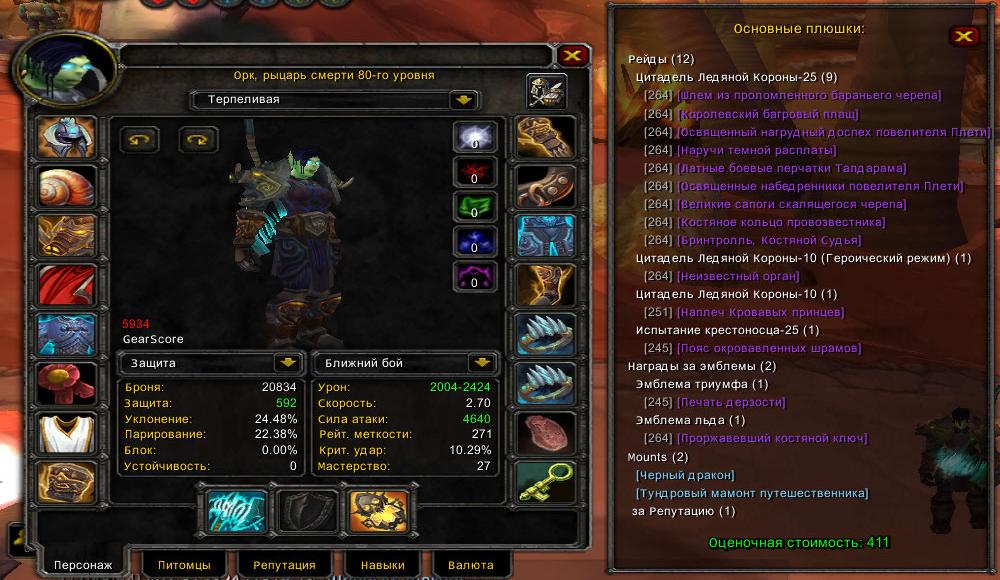 Магазин » №183 x100 Рыцарь смерти 5.9к гс (Орда) +2 мультиакк