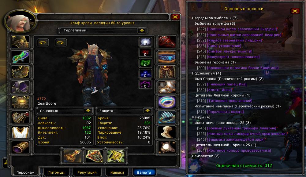 Аккаунт №2324 х100 Паладин Эльф крови(м) Орда