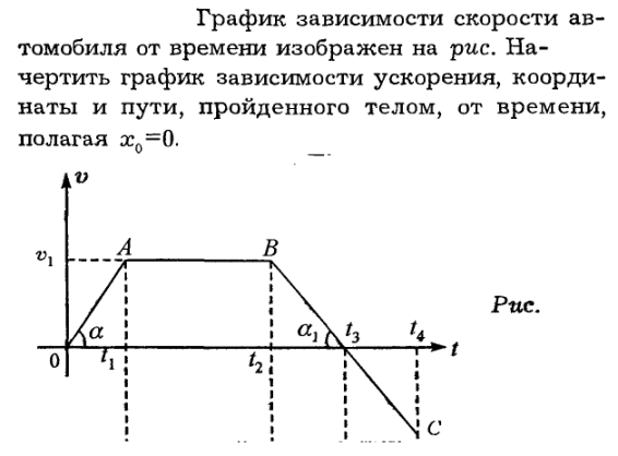 График зависимости скорости автомобиля от времени изображен на рис. Начертить график зависимости ускорения, координаты и пути, пройденного телом, от времени, полагая х0 = 0.