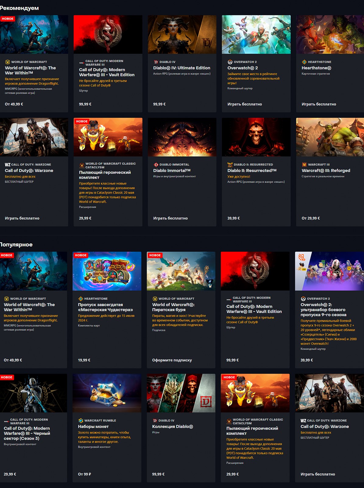 Для этого заходим в Battle.net и добавляем себе игру на аккаунт. Также на аккаунт можно купить игры которые не возможно купить на Российском аккаунте из-за санкций.