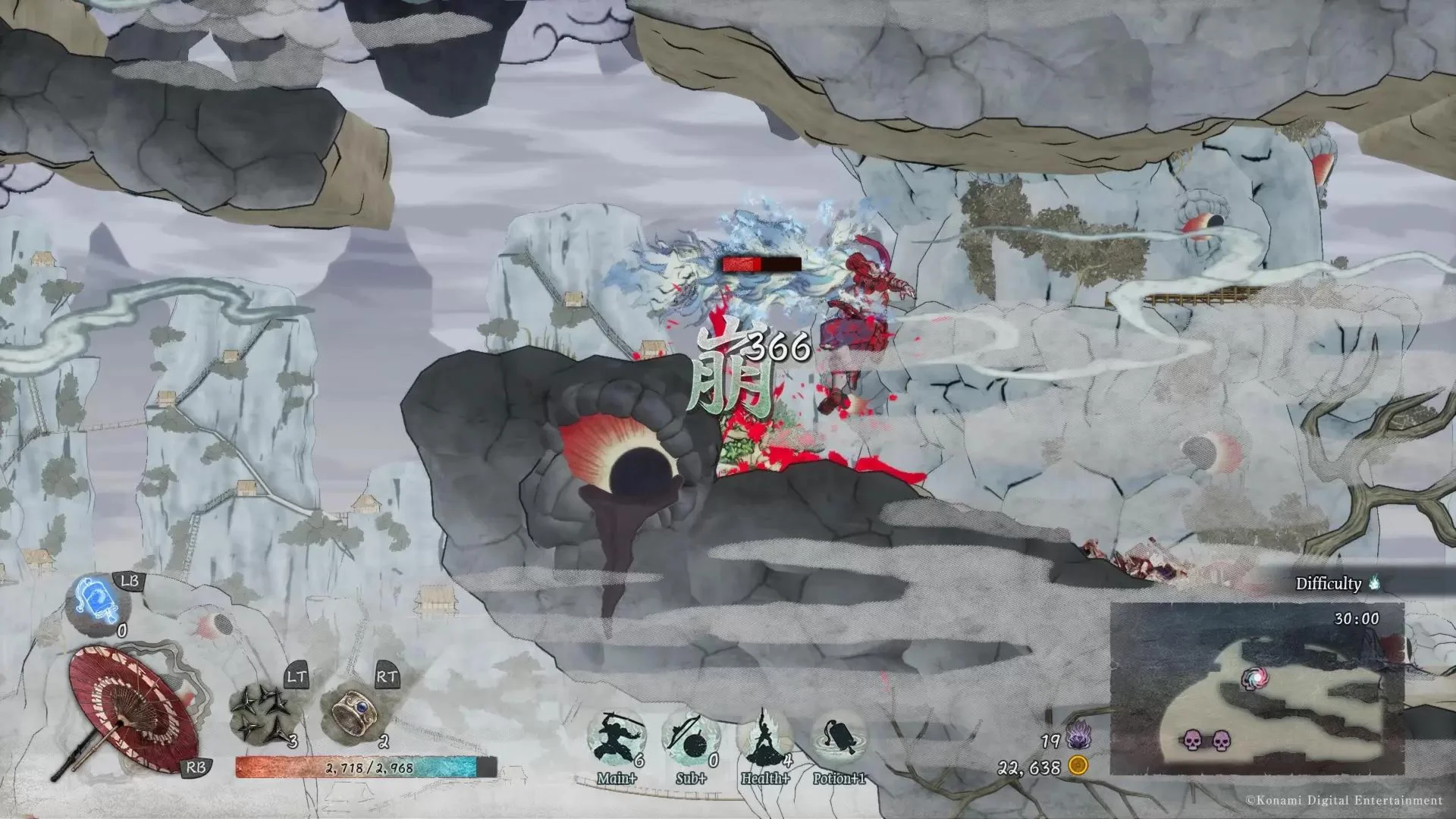 The Digital Deluxe Edition includes the following bonus contents. Bonus game - 1987 FC version "GetsuFumaDen": discover the original game with an added English Menu (in-game text in Japanese only), the original Japanese guidebook and Quick Save features Digital Artbook: browse through 29 pages packed with key art, stage art, character designs and lore from the original world of GetsuFumaDen Mini-OST: listen to 15 tracks from the game's stunning atmospheric soundtrack GetsuFumaDen: Undying Moon combines intense roguelike hack-and-slash action with a stunning dark fantasy world, brought to life through the stroke of traditional Japanese art. As the chosen leader and guardian of the land of the living, wield the otherworldy arsenal and powers of the Getsu clan as you overcome multiple "Death" and descend deeper into the depths of Hell to eradicate the source of the cataclysm. Distinct Ukiyo-e Inspired Visuals Inspired by the Japanese ukiyo-e art style, the world of GetsuFumaDen is as beautiful as it is deadly. Vibrant, dynamic 2D animations bring the artistic world to life. Brutal, Larger than Life Boss Battles A reanimated demon lord, a colossal centipede, and a five-headed hydra are only some of the myriad massive and fearsome monsters and yokai standing in your way. Defend yourself against their relentless onslaught and emerge victorious to descend deeper into the depths of Hell. Dynamic, Weapon-Based Combat. Master the rythmn of intense sword fighting action: pacing and timings of movements are inspired by Japanese martial arts. Utilize the unique special moves of a wide range of weapon types including katanas, battle umbrellas and spears to outsmart your enemies. Authentic Roguelike Action While death is not the end, the world of Hell lives and breathes, presenting new map layouts and challenges to overcome with each attempt. Permanent upgrades, customizable weapons, and variable level progression provide new opportunities and challenges for every run. Immersive Weapon Enhancement System The crafting process gives you complete control over the ability to collect, enhance and unlock abilities of main and sub weapons. Unlock enhancements to your favorite weapons at each run, and get back in the action! Soul Devour Power-Up System Collect souls during each descent to power up in real time. Utilize the unique power-up system to dynamically and strategically select enhancements. © 2021 Konami Digital Entertainment