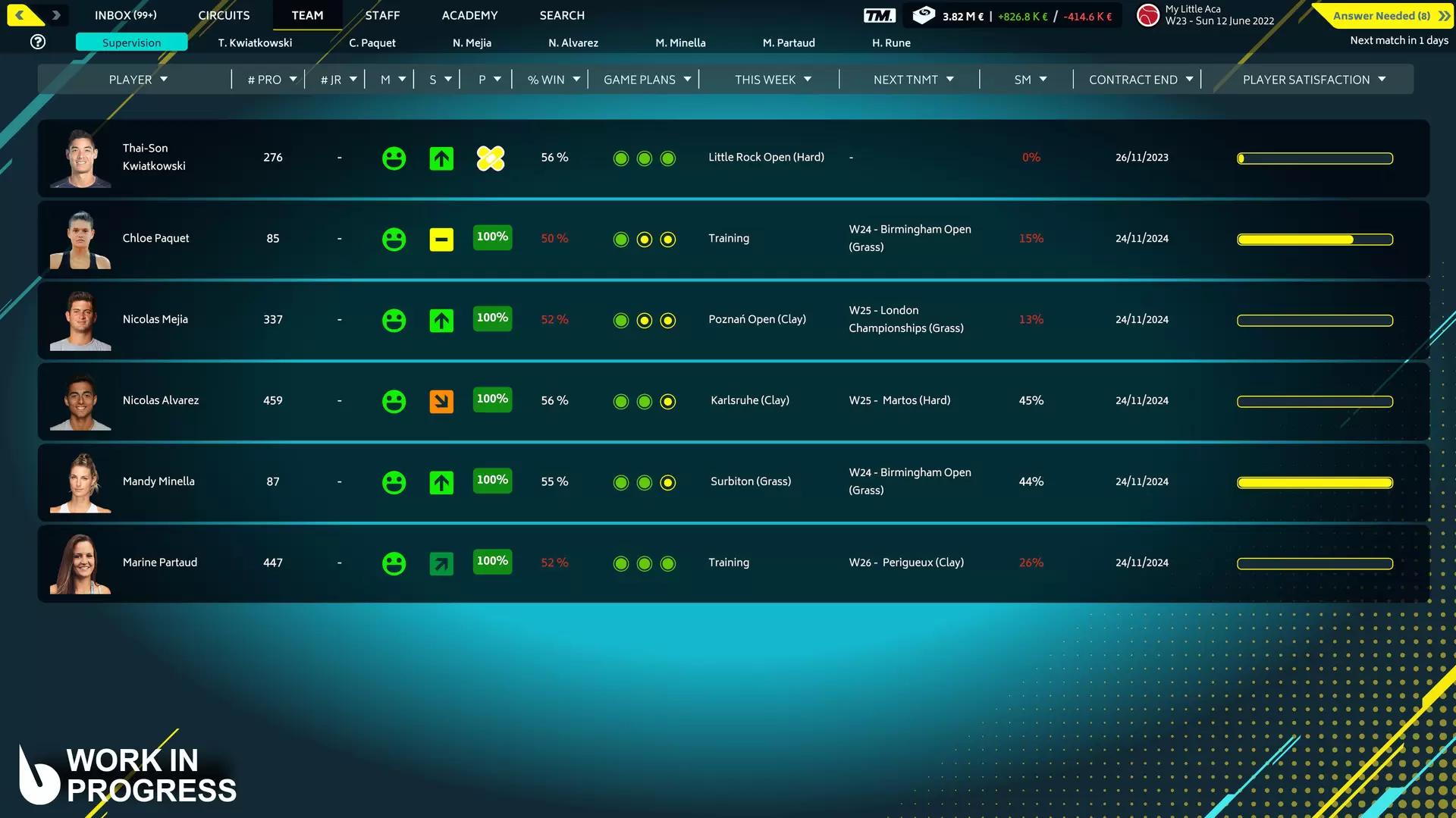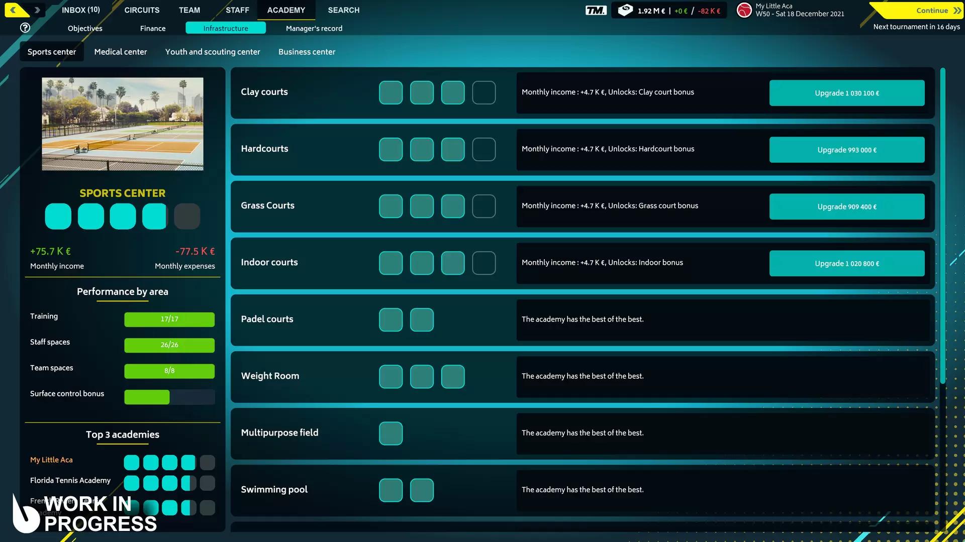 Примерьте костюм тренера по теннису и менеджера теннисной академии! Вас ждёт самый реалистичный симулятор тенниса, как на корте, так и вне его. Победите и возьмите всё под контроль! В игре более 2000 турниров, от молодёжных до профессиональных, и вам предстоит отобрать из 5000 игроков таланты, что приведут академию к славе. Финансовая стабильность, обсуждение контрактов, структурные инвестиции... Управляйте с толком, достигайте мелких и крупных целей и впечатлите совет директоров. Окружите себя лучшим персоналом (тренеры, техники, специалисты по физиологии, тактике и душевному здоровью и не только) и разработайте программу тренировок, наилучшим образом соответствующую способностям ваших игроков, их ожиданиям и вашему стилю! Научитесь складно говорить на пресс-конференциях и покажите совету директоров и игрокам, что работа вам по плечу. Трёхмерный движок позволит погрузиться в матч с головой и в качестве тренера направлять своего игрока в реальном времени! Предпочитаете мощно подавать или оставаться на базовой линии? Вы пылки или пассивны? Возьмите матч под контроль, навяжите сопернику свой стиль игры и возведите игрока на вершину. ПРЕЗЕНТАЦИЯ ОСОБЕННОСТЕЙ Вышла вторая часть игры, и в ней есть новинки. Создание игрока Сделайте игрока на свой вкус! Машина для подачи мячей или неутомимый марафонец? Подкидывает мячи высоко или низко? Выберите стиль игры и помогите игроку прийти в такую форму, в которой он приведёт академию к титулам и славе! Новая инфраструктура Новая система инфраструктуры сделает различные инвестиции ещё реалистичнее и поможет погрузиться в жизнь управляющего академией. Хотите специалистов по глиняным кортам? Тогда обеспечьте свою структуру охряными тренировочными площадками. Не нравится, как работают ваши скауты? Инвестируйте в центр обучения и ускоряйте оценку. Вы управляющий, вам и решать! Круговая система Чтобы выиграть финал в конце сезона, нужно пройти новую группу и добраться до полуфинала: 2 группы по 4 игрока, 8 лучших в игре. Такой же формат в финале Next Gen (для участников не старше 21 года) и в молодёжном финале. Старайтесь набирать как можно больше очков, потому что на присуждение титула может повлиять даже крохотная разница! Инструменты управления командой Помогут оптимизировать управление командой, а значит, нужны всякому уважающему себя менеджеру! Вы получите все сведения о команде (недельное расписание, следующий турнир, текущая форма, состояние коммерческих контрактов и т. д.), историю матчей, подробные результаты, заработки на турнире или даже полную карточку каждого игрока и... отчёты о новых участниках! Что ещё? Новая система управления контрактами и переговоров Договаривайтесь с талантами и заключайте контракты, размечающие жизнь академии. Система переговоров была доработана и отражает реалии делового мира: теперь она включает и контракты, и спортивные цели игроков, и соглашения с поставщиками инвентаря... Агент академии получил важнейшую роль в развитии вашей империи. Импорт и экспорт игрового плана Одним нажатием можно импортировать победную тактику Рафы против Роджера 2009 года или экспортировать и стать звездой сообщества TM. Улучшены симуляции матча Самая реалистичная трёхмерная симуляция тенниса была улучшена, и теперь вы можете занять место на корте и присутствовать в игре вместе 