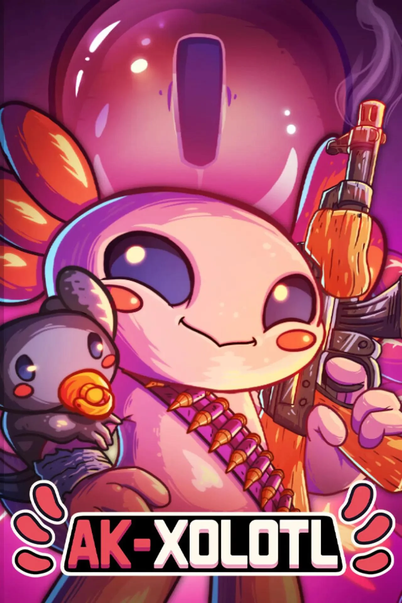 AK-xolotl — шутер-«рогалик» с видом сверху. Участвуют самые милые земноводные в мире! Вы — аксолотль с автоматом наперевес, и вы готовы начать неистовый кровавый разгул, фаршируя свинцом всякого, кто стоит на вашем пути. Прорубайтесь через разные биомы, зачищайте генерируемые случайным образом помещения, а по дороге собирайте вкусняшки и драгоценных малюток-аксолотлей. Используйте невероятные способности аксолотлей к регенерации! Что бы с вами ни делали, вы восстанете снова — еще сильнее, плюс получите новые пушки в каждом следующем бою. Сражайтесь, умирайте, возвращайтесь еще сильнее и сражайтесь снова! В пути вы будете находить разных крошек-аксолотлей! Приносите крошек-аксолотлей обратно в свой пруд, выкармливайте их с любовью и заботой. Они вырастут и станут новыми бойцами с недетскими навыками убийц! Носковые змеи, гигантские крабы с ножами — вам придется здорово постараться, чтобы отрастить новые конечности после встречи с такими боссами! Посмотрим, на что способен AK-47 против ножа! Находите икринки и выращивайте из них крошек-аксолотлей... превращая их в идеальные машины для убийства с уникальными способностями! Повышайте их статистику, угощая приготовленными по особым рецептам лакомствами. Пленных не брать, съедать все до крошки — и никто не сможет вас остановить! Ближний бой для любителей топоров и мяса, или бескровный электрический разряд?.. Выбирать вам! Прокачивайте любимое оружие, используя шикарные усиления: Мьёльнир, геймерский сок и даже… брата Карла? © 2023, Playstack and 2Awesome Studio, all rights reserved