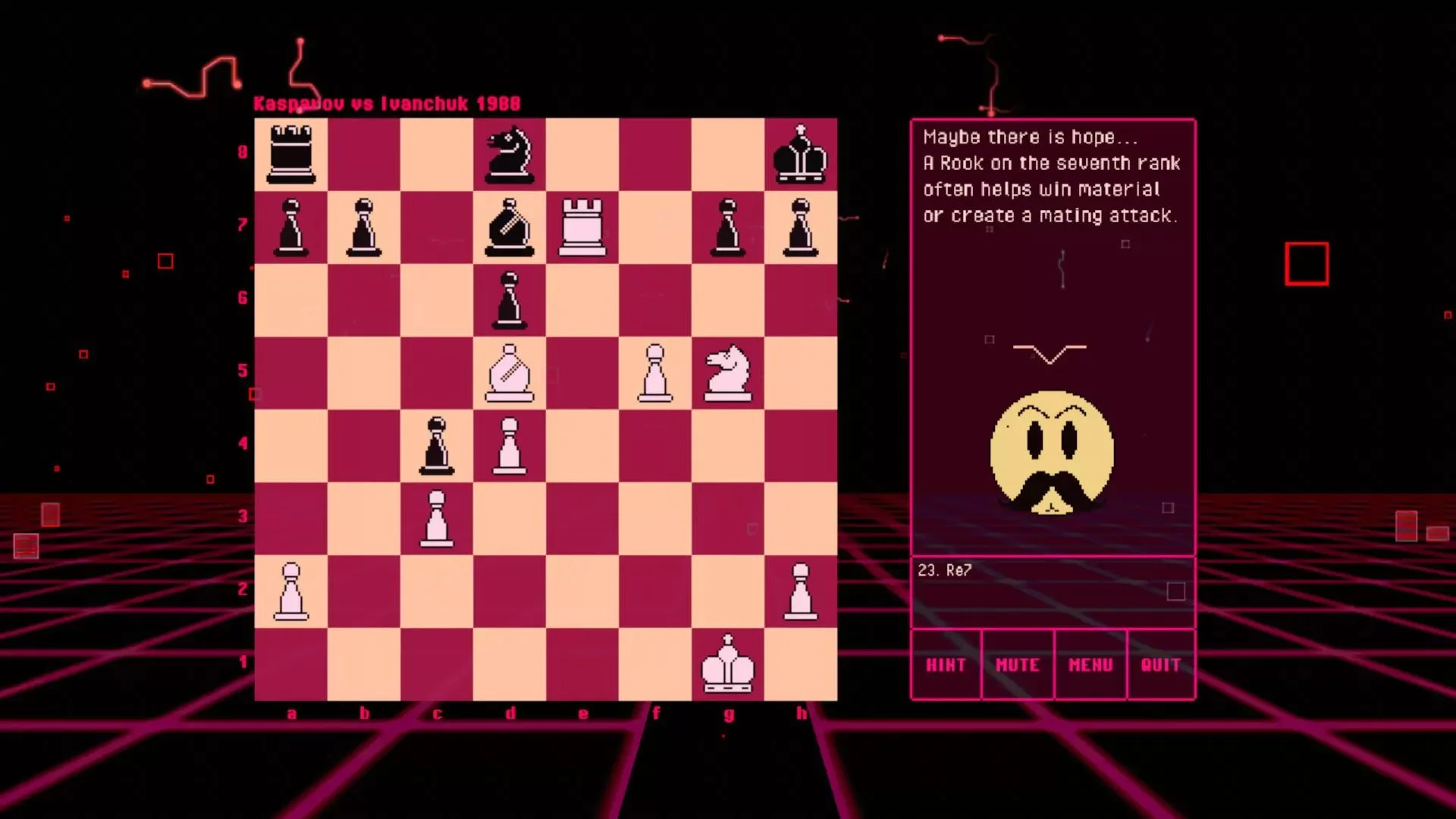 The soviet digital teacher is back! This time he will teach you chess through memorable matches from the late USSR Chess Championships (the 1970s, and 80s) Learn the theory behind historical matches played by masters Find out why chess pros chose the moves they did Play hypothetical outcomes to understand why the losing player resigned 150+ "best-move" type puzzles from famous matches Memorable matches organized by chess Masters in 16 chapters Have fun with BOT.vinnik's peculiar sense of humor!