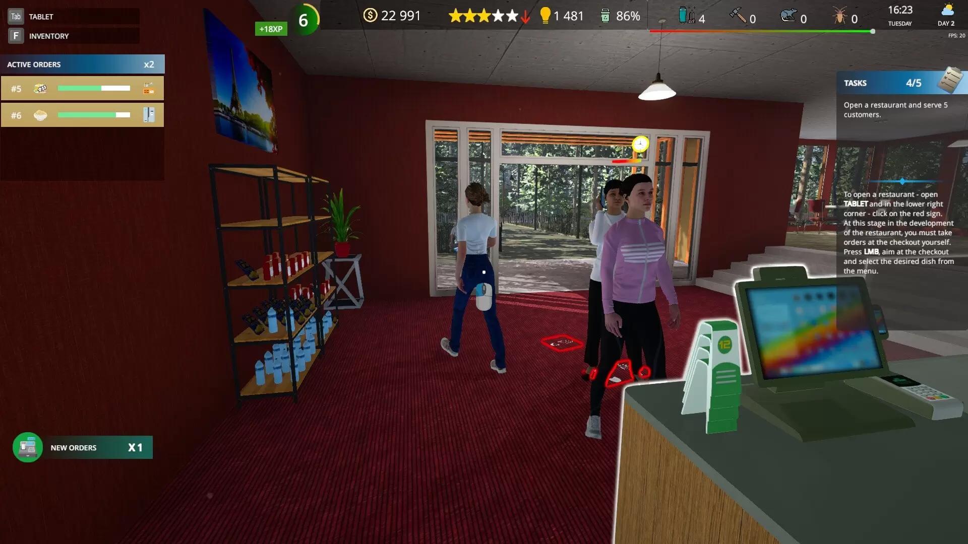 Мы вдохновлялись играми песочницами и симуляторами, где игроки могут создавать что-то своё, налаживать процессы, развивать своё творение, вкладывать в него душу и проявлять свой творческий потенциал. В Cafe Owner Simulator – у вас есть такая возможность, наша цель — предоставить миру игру - в которой каждый сможет воплотить свою мечту и открыть собственный ресторанный бизнес. Уборка и реставрация При покупке помещения под ваш собственный ресторан — вам нужно будет освободить его от мусора и сделать капитальный ремонт, это задача не из простых, но что может быть лучше, чем наводить порядок в будущем успешном ресторане или кафе? Покрытие поверхностей После уборки и ремонта — вам предстоит выбрать лучшие обои, ковры или покрытия из различных материалов, с этого начнётся ваш дизайн. Кухня и оборудование Как же обойтись без кухонного оборудования? Определитесь с типом вашего будущего заведения и приобретите всё необходимое оборудование для него. Так же, не забудьте подключить его в розетки. Меню блюд и продукты Для открытия заведения — необходимо добавить минимум 5 блюд в меню. Для приготовления этих блюд — вам понадобятся продукты, закупить их вы можете в магазине продуктов. Менеджмент и сотрудники В игре существует рынок труда. Чтобы нанять сотрудников — заплатите хедхантеру и он найдёт вам доступных на рынке работников. У каждого работника есть свои характеристики, выбирайте лучших. Чем выше характеристики — тем выше зарплату хочет работник. Со временем мотивация к работе падает — платите премии или нанимайте новых работников, тут выбор за вами. Развитие ресторана, уровни За выполнение различных действий в игре — вы зарабатываете очки опыта. При достижении определённого лимита - уровень растёт и вы получаете множество возможностей: новую мебель и оборудование для установки, новые блюда в меню, новые возможности вашего планшета, денежное вознаграждение и многое другое. Расширение ресторана и новые возможности Зарабатывая деньги — вы сможете открыть новые площади вашего кафе, чтобы воплотить все свои дизайнерские идеи в реальность. В дальнейшем — возле ресторана можно будет построить отель и создать сквер для отдыха и развлечения посетителей. Обязанности владельца ресторана Как и любого владельца или менеджера ресторанного бизнеса — вас ждёт много работы и ежедневных задач. Оплата счетов, менеджмент сотрудников, заказ продуктов, проверка исправности оборудования и его ремонт, борьба с различными вредителями и уборка помещений, работа на кассе и на стойке кафе(пока вы не наймёте для этого сотрудников), прохождение проверок пожарного инспектора, настройка и заказ рекламы, маркетинг, при необходимости можно взять кредит в банке, но лучше во время вернуть, иначе будут проблемы, и многое другое.