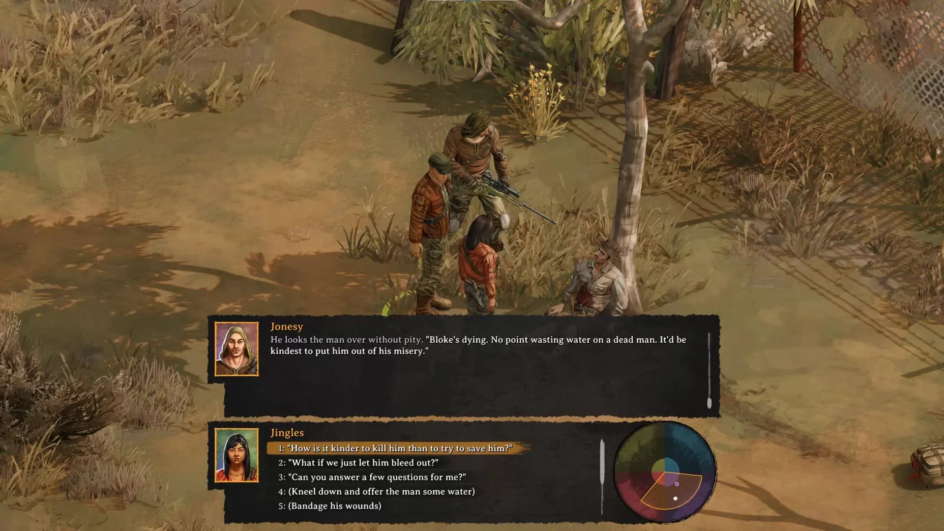 Born of a love for traditional computer role-playing from franchises such as Pillars of Eternity, Disco Elysium, Fallout, Wasteland, Tyranny, Pathfinder, and Baldur's Gate, Broken Roads provides a rich, engaging narrative in which players make their way across a desolated future Australia. Blending together traditional and all-new role-playing elements on top of a classless system offering nearly unlimited character development options, Broken Roads presents players with an original morality system: the Moral Compass. This novel design sees dialogue options and questing decisions influence, and be influenced by, a character's philosophical leaning. Immerse yourself in a game world set in post-apocalyptic Western Australia filled with intricate lore, deep history, and compelling characters. As you embark on your epic journey, complex storylines, branching quests, and memorable encounters await. Uncover hidden secrets, unravel political intrigues, and confront moral dilemmas that challenge your assumptions about right and wrong. Every decision you make shapes the rich narrative, leading to multiple outcomes and ensuring a truly personalized gameplay experience. From the grand overarching plot to the smallest details, the world is brought to life with atmospheric descriptions and vivid dialogues, delivering an immersive and unforgettable adventure. The game seamlessly merges classic RPG elements with innovative features, providing players with a unique and customizable gameplay experience. Building upon a classless system, it offers an extensive range of character development options, allowing players to shape their abilities and skills to suit their playstyle. The inclusion of all-new role-playing elements adds depth and complexity to the game's mechanics, intriguing moral choices, and immersive narrative arcs. The Moral Compass introduces a groundbreaking morality system that goes beyond traditional notions of good and evil. Instead, it focuses on a character's philosophical leaning, allowing players to shape their protagonist's worldview in unique and nuanced ways. For example, a character who leans towards utilitarianism may prioritize the greater good, making decisions based on the overall benefit to society, even if it means sacrificing individual lives. With every tough decision that is made, the characters Moral Compass can shift, potentially making them more broad or narrow-minded or even able to change their morality entirely as the journey progresses. The system allows players to create a protagonist with a unique moral identity that influences their journey and relationships, but also is influenced by every choice they make. Roam the vast Outback, explore decaying urban centers, and navigate treacherous desert regions as you uncover the secrets of this hauntingly beautiful and dangerous land. Survive, fight, and forge alliances in a unique setting that captures the essence of Western Australia's diverse people and landscapes and brings a fresh twist to the post-apocalyptic genre. Copyright © 2023 Versus Evil LLC. Broken Roads TM is a trademark of Versus Evil LLC® Versus Evil® is a registered trademark of Versus Evil LLC.