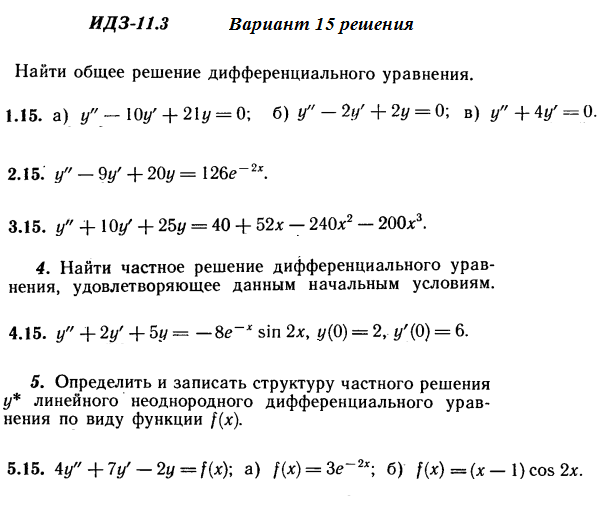 Решения 5-и заданий на дифференциальные уравнения из Рябушко части 2 ИДЗ 11.3 вариант 15