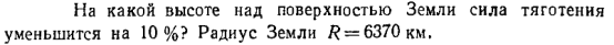 На какой высоте над поверхностью Земли сила тяготения уменьшится на 10%? Радиус Земли R = 6370 км.