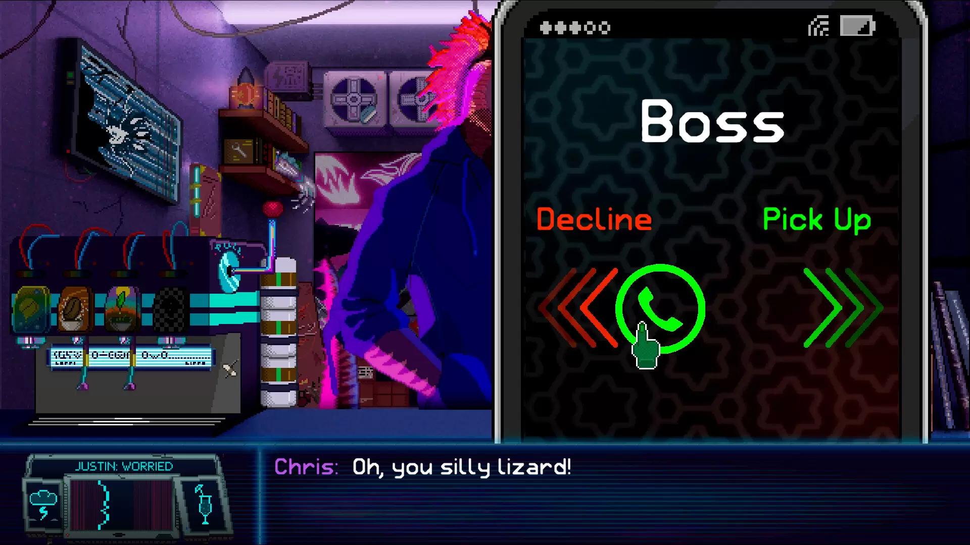 Dynopunk — это ироничное приключение в эстетике киберпанка в мире, где место людей заняли динозавры. Вам предстоит управлять ремонтной мастерской: чинить технику, искать подход к разным клиентам, беседуя с ними по душам и угощая напитками, — и одновременно разбираться с личными проблемами и пытаться осуществить свою мечту. Представьте, что на Землю так и не упал метеорит, динозавры не вымерли, а продолжили развиваться. Сейчас, спустя миллионы лет, они живут в высокотехнологичных мегаполисах. В том числе Крис, владелец ремонтной мастерской, который мечтает построить машину времени, чтобы вернуться в прошлое и найти свою любовь. Ведь он — последний тираннозавр в этом мире! Киберпанк с динозаврами Любуйтесь пиксельной графикой в стиле ретро-игр 1990-х годов. Знакомьтесь с героями из альтернативного будущего, где миром правят хищные и травоядные динозавры. Продвигайтесь по сюжету под расслабляющие lo-fi треки, принимая множество решений, влияющих на повествование. Ремонтируйте технику Задайте нужные вопросы клиентам, чтобы выяснить причину неисправности, а затем устраните ее. Будьте внимательны и аккуратны, ведь от этого зависит ваша прибыль. Общайтесь с посетителями Поговорите с клиентами по душам и предложите им напиток, исходя из их предпочтений. Стакан прохладной газировки или чашечка горячего кофе могут увеличить ваш шанс на достойные чаевые. Следуйте за мечтой Ваш герой — последний тираннозавр на планете, поэтому он стремится построить машину времени, чтобы вернуться в прошлое и найти свою любовь. Удастся ли ему воплотить мечту? В Dynopunk вас ждут: Разветвленный сюжет, на развитие которого влияет не только общение с клиентами, но и качество вашей работы в мастерской. Обмен любезностями с необычным помощником, говорящим принтером, который так и норовит подколоть вас на тему маленьких лапок и дать парочку вредных советов по ведению бизнеса. Симулятор подачи напитков, от которых зависит не только настроение клиентов, но и чаевые. Оригинальный lo-fi саундтрек, пропитанный духом 80-х! Налейте себе чашечку горячего чая, устройтесь поудобнее и позвольте себе отдохнуть, погружаясь в сюжет. Знакомство со множеством героев, приходящих в мастерскую. У каждого из них уникальный характер, мечты и история, на которую вы можете повлиять своими решениями. Ироничные диалоги, море шуток, отсылок и пасхалок для поднятия настроения! Пиксельная графика в стиле ретро-игр 1990-х годов. All titles, content, publisher names, trademarks, artwork, and associated imagery are trademarks and/or copyright material of their respective owners. All rights reserved.