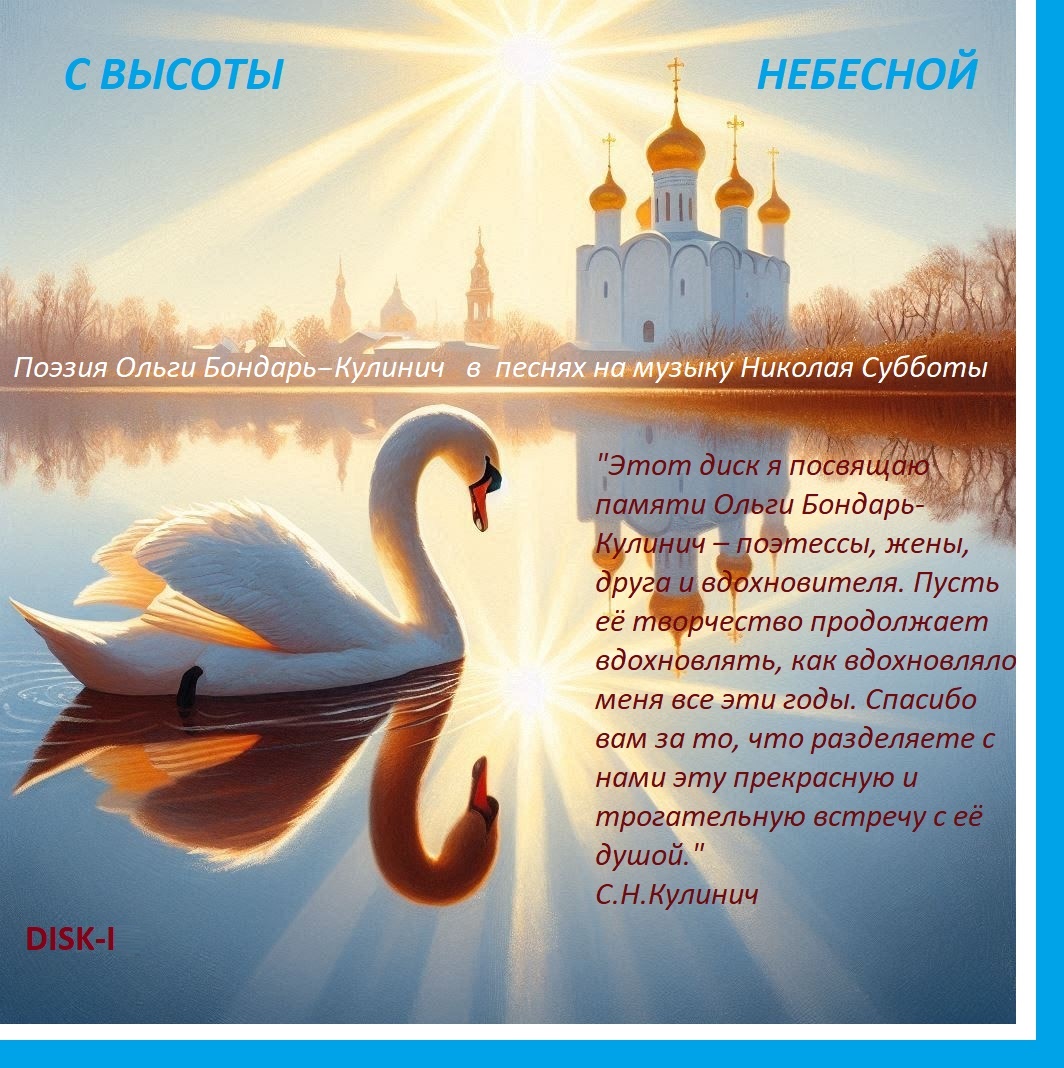 Музыку к песням на стихи Ольги Бондарь-Кулинич создал известный оперный и концертный певец и композитор, Заслуженный артист эстрадного искусства Украины, Кавалер "Ордена Мистецтв" Національної академії мистецтв України III, II, I ступеню: “Per Artem ad Victoriam” Николай Суббота. Он смог уловить тончайшие нюансы её поэзии, подарив стихам новое звучание и дыхание. Я бесконечно благодарен ему за это. Надеюсь, дорогие слушатели, что и вы испытаете незабываемое наслаждение, слушая эти стихи, облеченные в музыкальные композиции, которые, я надеюсь, не оставят вас равнодушными и оставят в ваших сердцах глубокий след. Я верю, что каждый, кто прикоснётся к этим стихам, ощутит ту самую светлую любовь, которой Олечка делилась со всем миром. Эти стихи – живое свидетельство её неиссякаемого духа и таланта, способного превратить обыденные моменты в нечто волшебное. Пусть эти мелодии и строки напомнят вам о том, что любовь и творчество живут вечно, даже когда дорогие нам люди покидают этот мир.