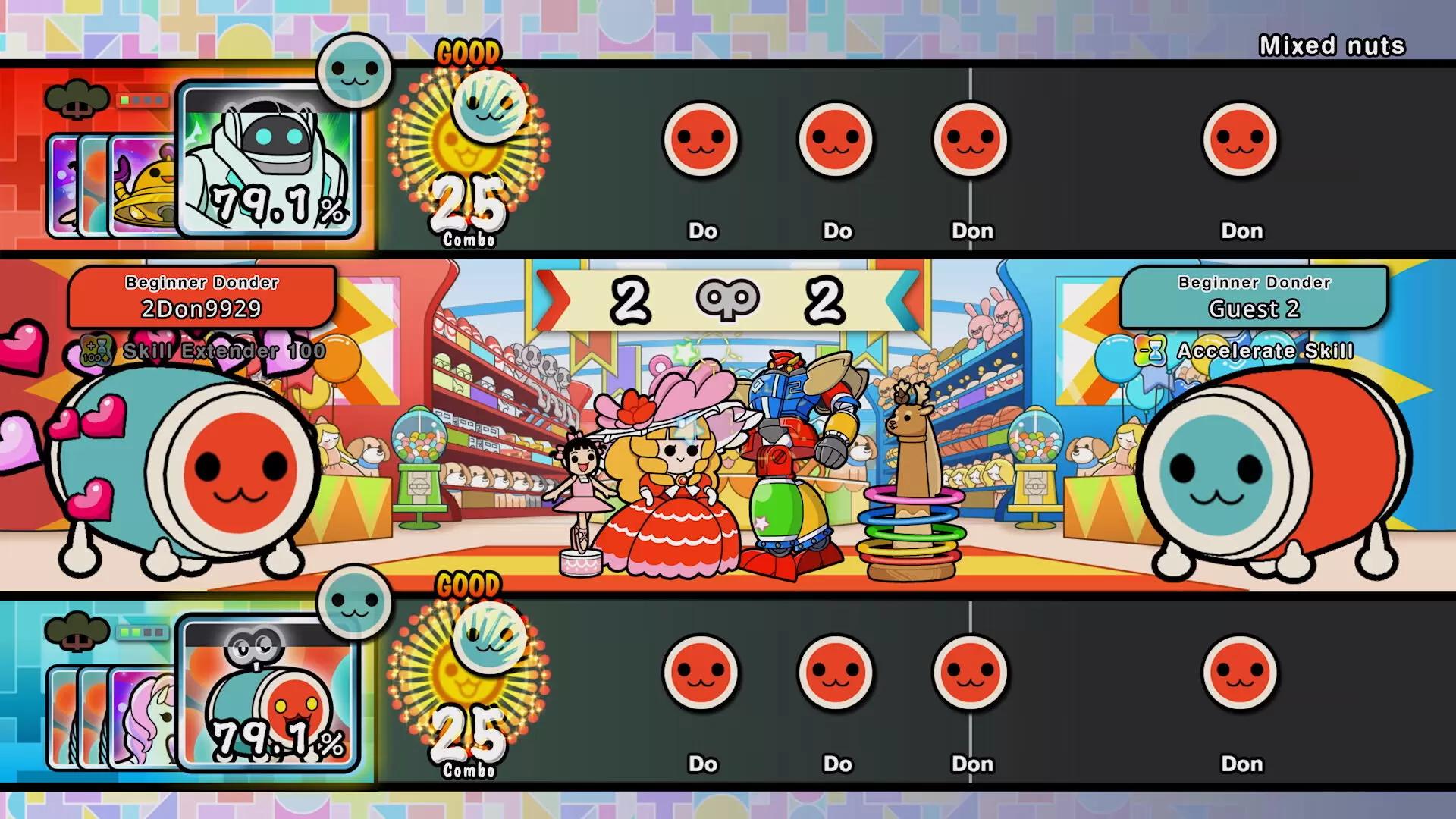 Добро пожаловать в Омико-сити, где можно найти все любимые элементы Taiko. Вместе с Дон-тяном познакомьтесь с Кумо-кюном и попытайтесь стать мастером барабанов-тайко! Режим тайко Стучите в ритме любимых песен и попробуйте доиграть их до конца. 4 режима сложности. 76 песен из аниме, игр, поп-музыки и VOCALOID™, в том числе Gurenge, Ending Theme Song из «Мой сосед Тоторо», Charles, MEGALOVANIA, Into The Night, Feel Special и не только. Можно играть с кем-то, не напрягаясь, или попытаться поставить рекорд, а поддержка ударных поможет с чувством ритма. 3 вида игр для 2–4 игроков. Великая барабанная битва Под ритм песен ваши игрушки будут оттеснять игрушки противника. Группа Дон-тяна Проведите успешные концерты группой из 4 участников! Гонка в ниндзя-додзё Станьте ниндзя и попробуйте победить в гонке с 2–4 другими игроками Онлайн-матчи Рейтинговые матчи Соревнуйтесь с игроками со всего мира! Матчи в комнате Для расслабленной игры в режиме тайко или «Великой барабанной битве» с друзьями и игроками со всего мира. Музыкальный пропуск Taiko До 700 дополнительных песен! Новые добавляются каждый месяц! Некоторые песни продаются отдельно. * Этот продукт есть и в другом издании. Следите, чтобы не купить его дважды. * В режиме тайко и «Великой барабанной битве» может играть до 2 человек. В «Группе Дон-тяна» и «Гонке в ниндзя-додзё» может быть до 4 участников. Каждому требуется 1 контроллер. * Игра поддерживает контроллер Taiko no Tatsujin в виде барабана для Xbox Series X|S и ПК. Taiko no Tatsujin™: Rhythm Festival & ©Bandai Namco Entertainment Inc.