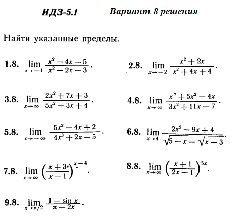 Решения 9-и пределов функций из Рябушко части 1 ИДЗ 5.1 вариант 8