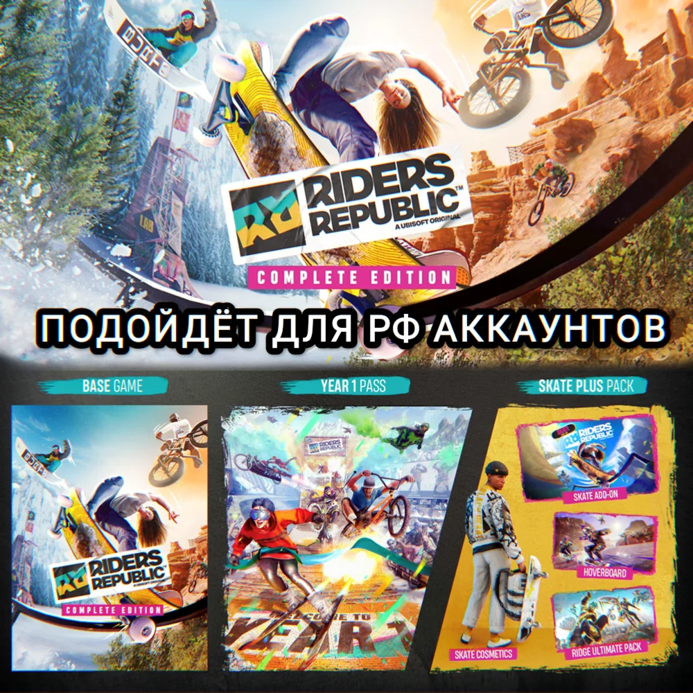 ☑️С Riders Republic ™ Complete Edition не испытывайте никаких ограничений и действуйте так, словно завтрашнего дня не наступит! Наслаждайтесь скейтбордом, BMX и ховербордом, чтобы получить уникальный опыт городской езды по яркому открытому миру Республики. Создайте свою легенду с помощью оригинальных видов спорта (гоночный велосипед, горный велосипед, лыжи, сноуборд и вингсьют)✔️