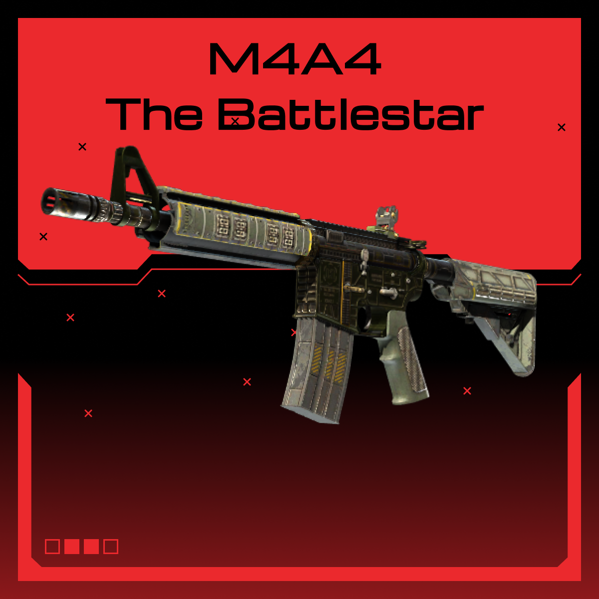 M4A4 — более точный, но слабый аналог АК-47 — полностью автоматическая штурмовая винтовка, которая находится исключительно на вооружении у спецназа. На накладной срезаны все углы. Остерегайся тех, кто говорит о сторожевой башне