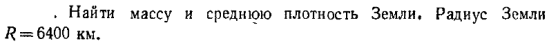 Найти массу и среднюю плотность Земли. Радиус Земли R = 6400 км.
