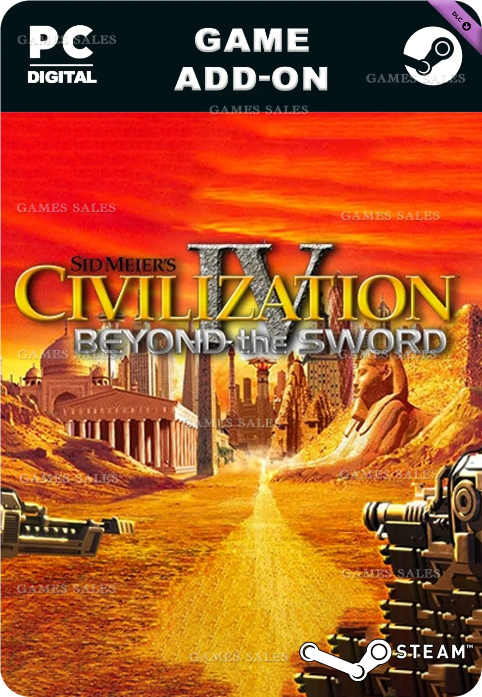 Sid Meier's Civilization IV®: Beyond the Sword — это второе расширение для Civilization IV — мирового хита, ставшего в 2005 году Игрой года. Расширение затрагивает исторический период после изобретения пороха. Разработчики из Firaxis и уважаемые члены сообщества подготовили 11 уникальных сценариев, бросающих вызов искушенному игроку. В Civ IV: Beyond the Sword входит десять новых цивилизаций, шестнадцать новых лидеров и пять новых чудес света. Новые юниты, входящие в это дополнение, разнообразят игровой опыт и откроют еще более захватывающие и увлекательные способы добиться мирового господства.