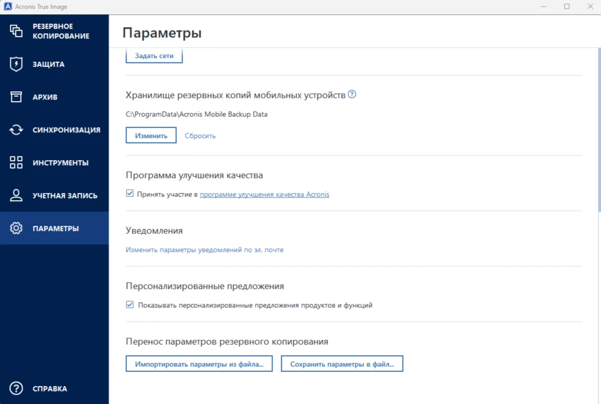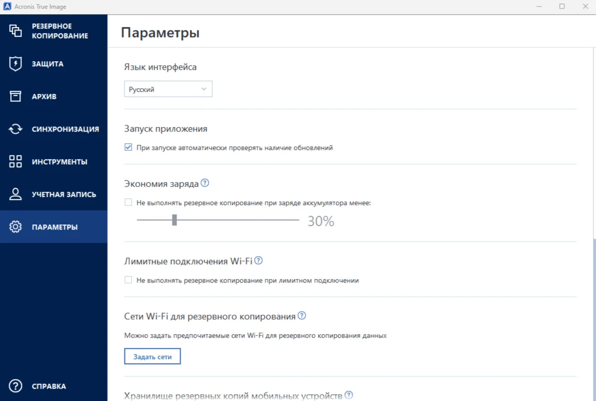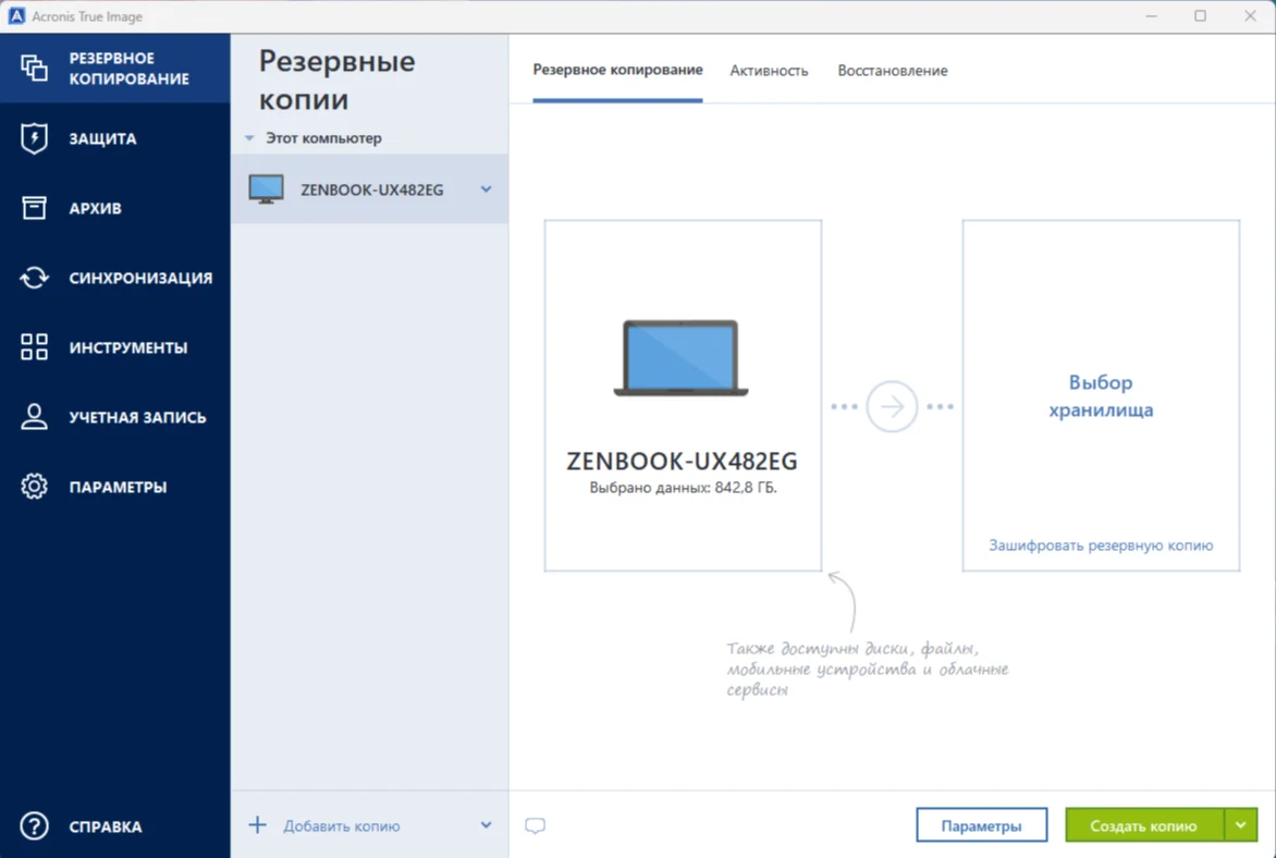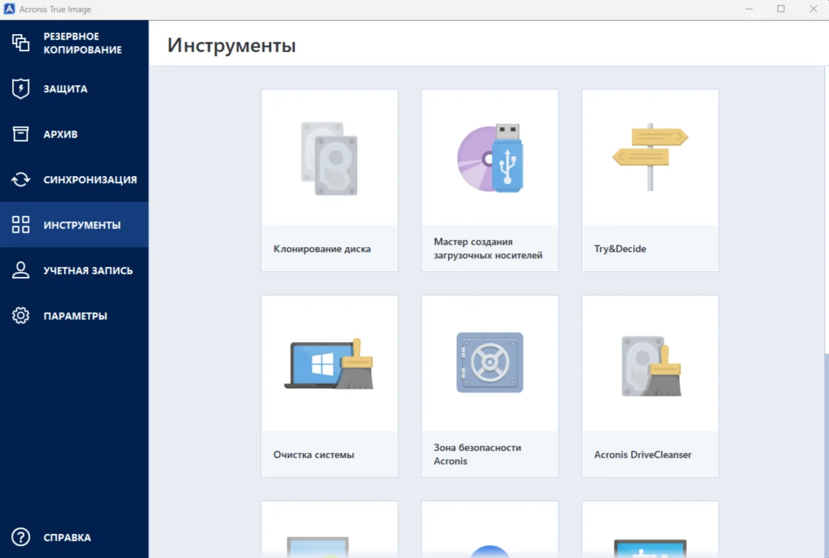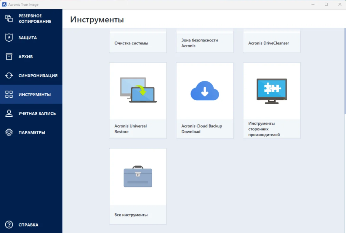 Функции Acronis True Image: