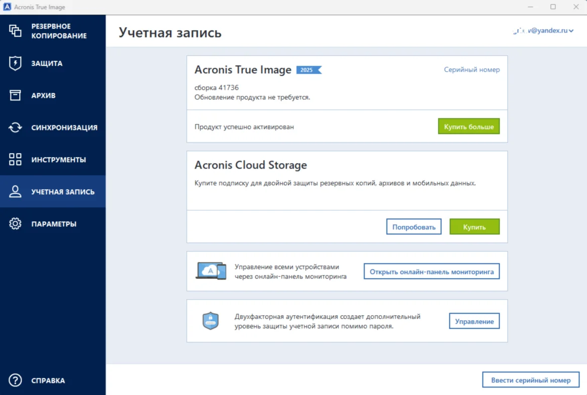 и ключ обновления до Acronis True Image 2025